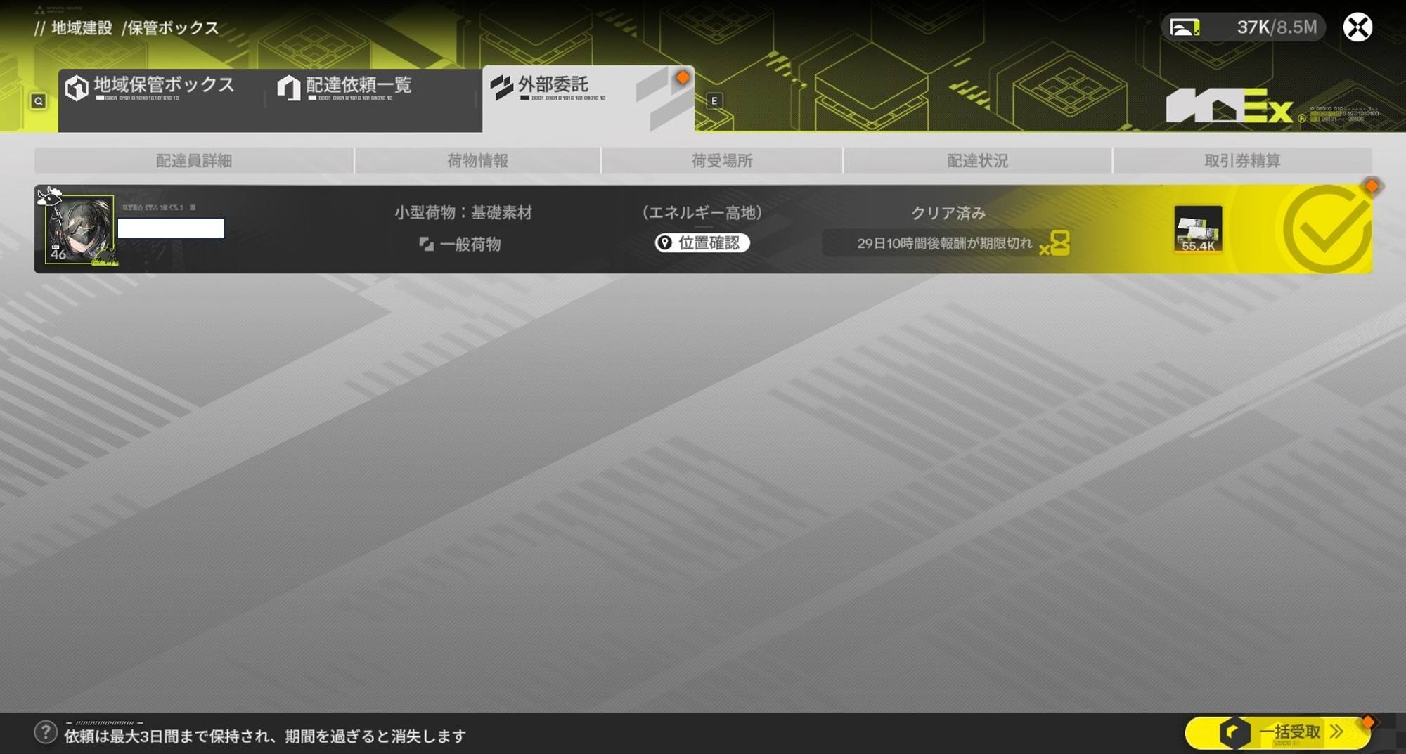 外部委託とは、保管ボックスで行う配達任務を他のプレイヤーに依頼できる機能です。プレイヤー同士で配達を依頼することで取引券を獲得できます。