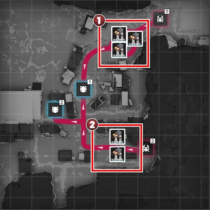 拠点防衛は、敵の出現数の確認が大事です。どの襲撃経路からどの程度攻めてくるか把握していないと、適切な数の設備を配置できないため、何度か挑戦して全ての襲撃経路の出現数を見極めましょう。
