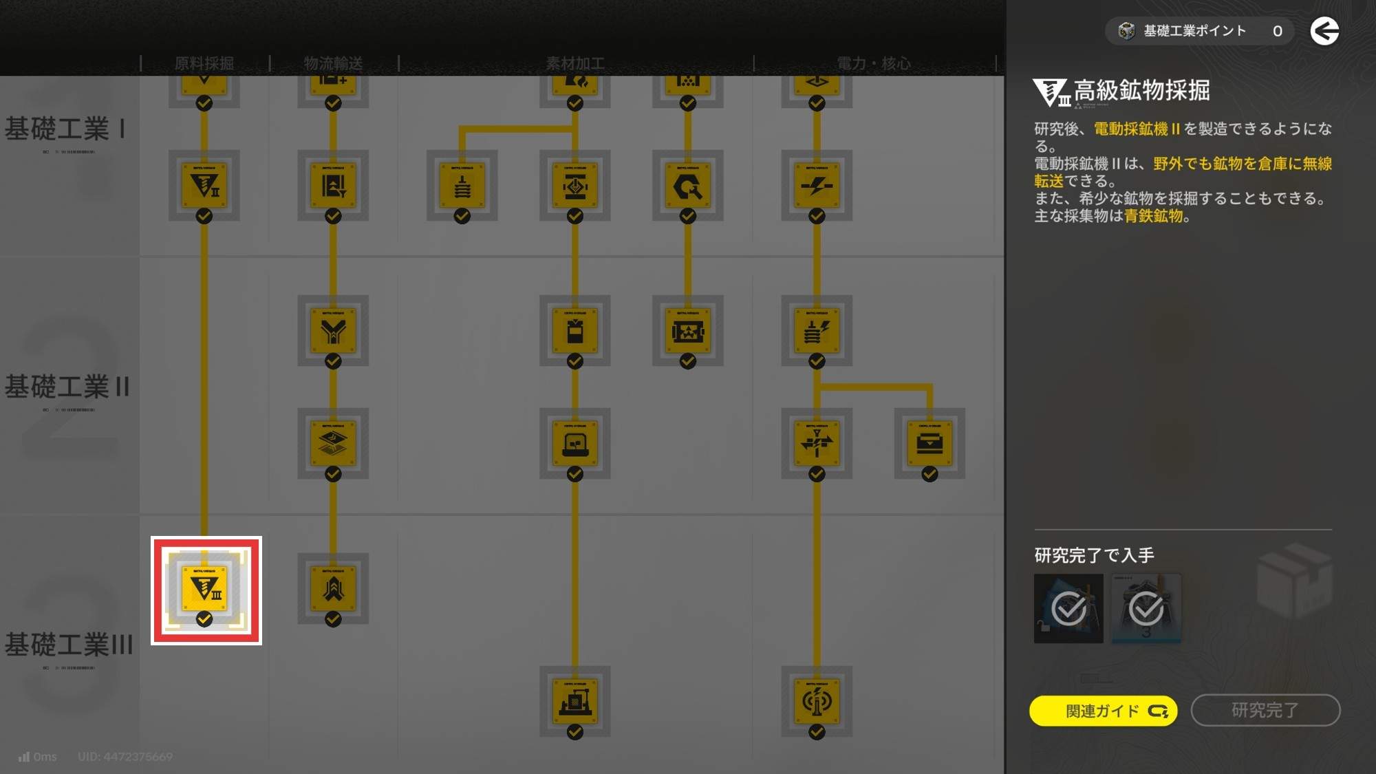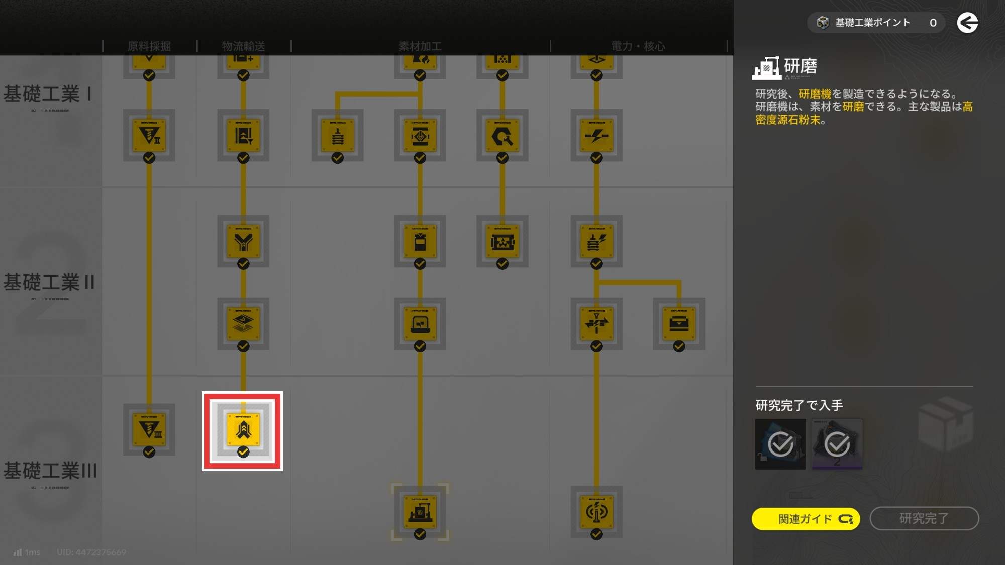 発電や各拠点との取引効率化には研磨機が欠かせないため、基礎工業ポイントを獲得したら必ず解放しましょう。