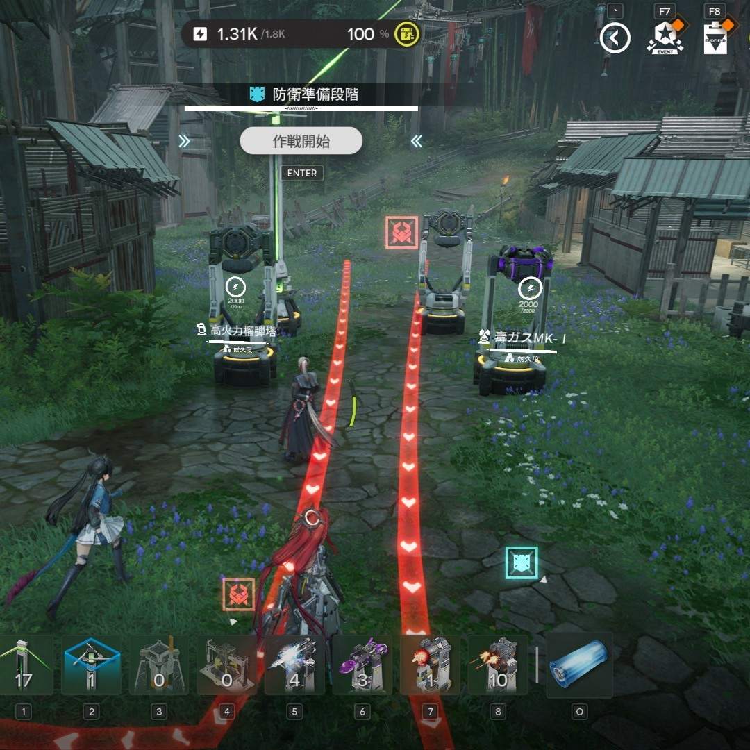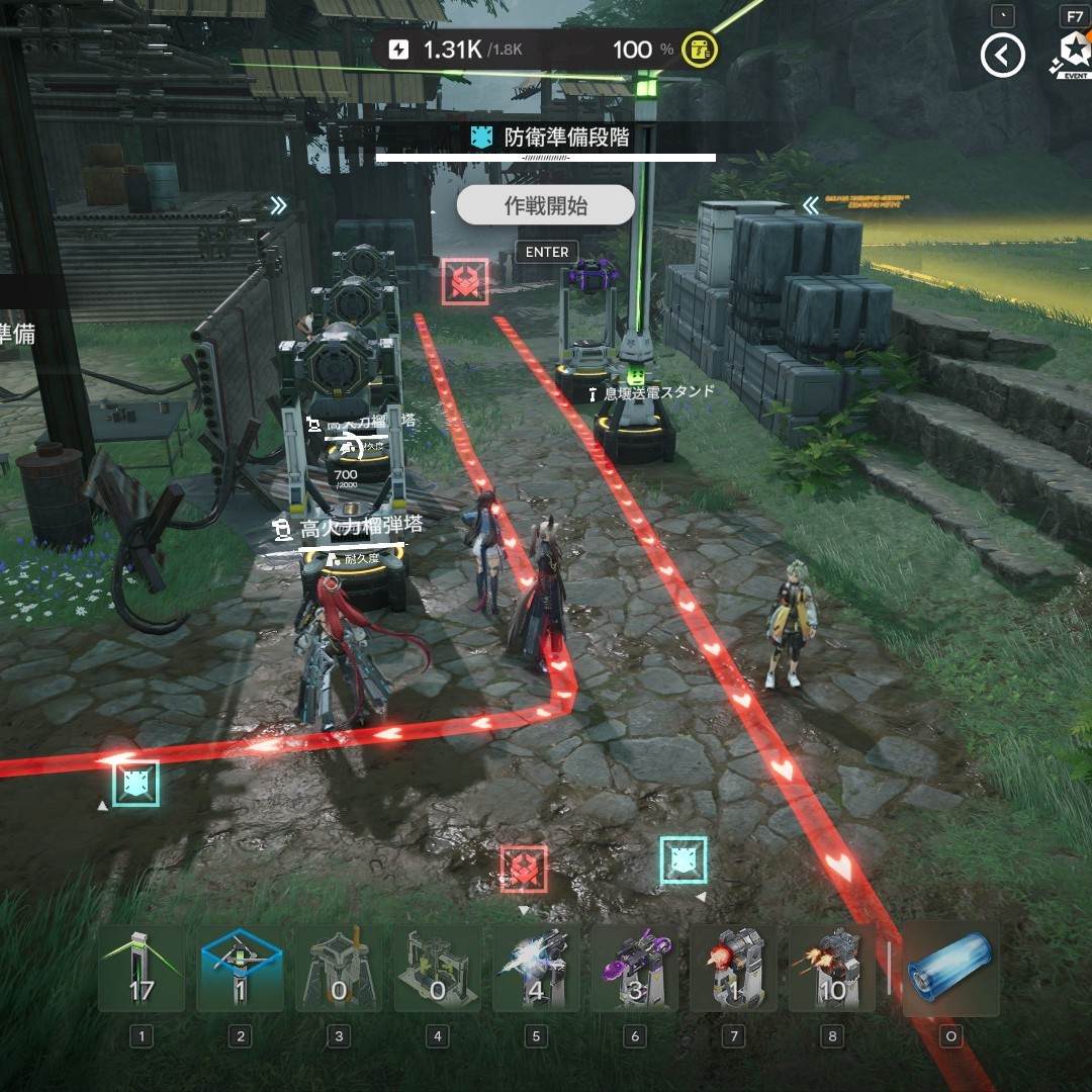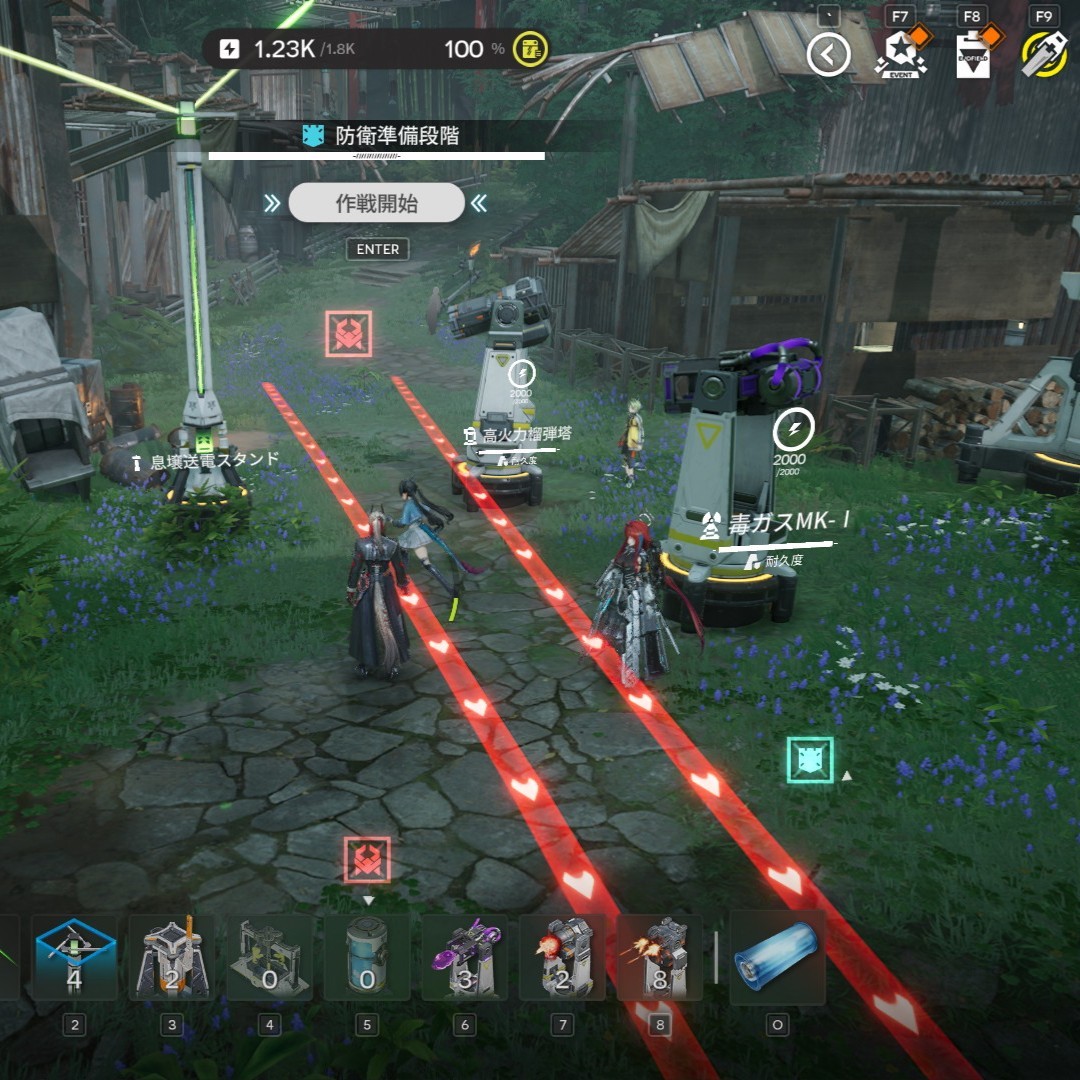 設備の設置上限は、防衛準備フェーズ時で防衛設備を配置する際に確認できます。設置最大数まで防衛設備を配置し、最大火力で敵を迎え撃ちましょう。