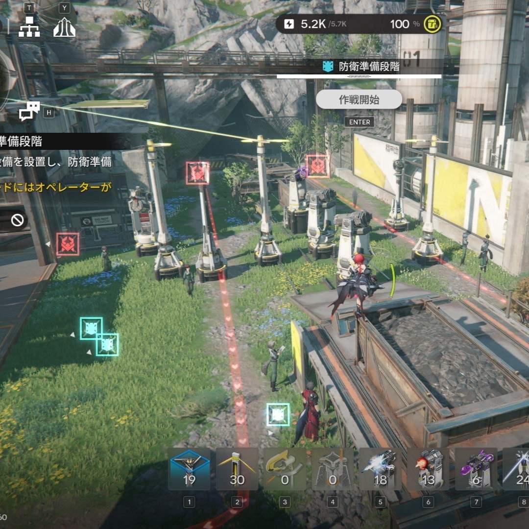 主動介入は、プレイヤーが参加できる拠点防衛戦です。プレイヤーが関与する分防衛設備の設置上限数が少ないですが、任意の場所で戦闘を行えるため、防衛設備で倒せなかった敵の処理などを行えます。