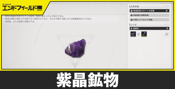 アークナイツエンドフィールドの紫晶鉱物の入手場所を紹介。紫晶鉱物の増やし方も記載しています。