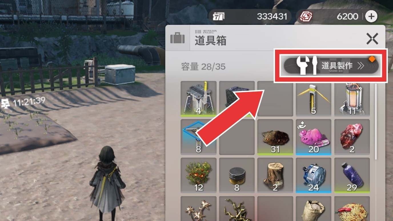 | 1 | 拡大する画面上にあるカバンマークの「道具箱」を開くPC版はBキーで道具箱を開く |