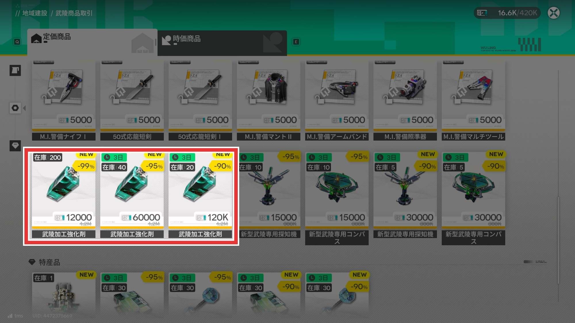 まずは商品取引で武陵加工強化剤を購入しましょう。武陵加工強化剤は、武陵の商品取引レベルが2以上で発売されるため、レベルが足りない場合は先に景玉谷で商品取引システムのレベル上げが必要です。