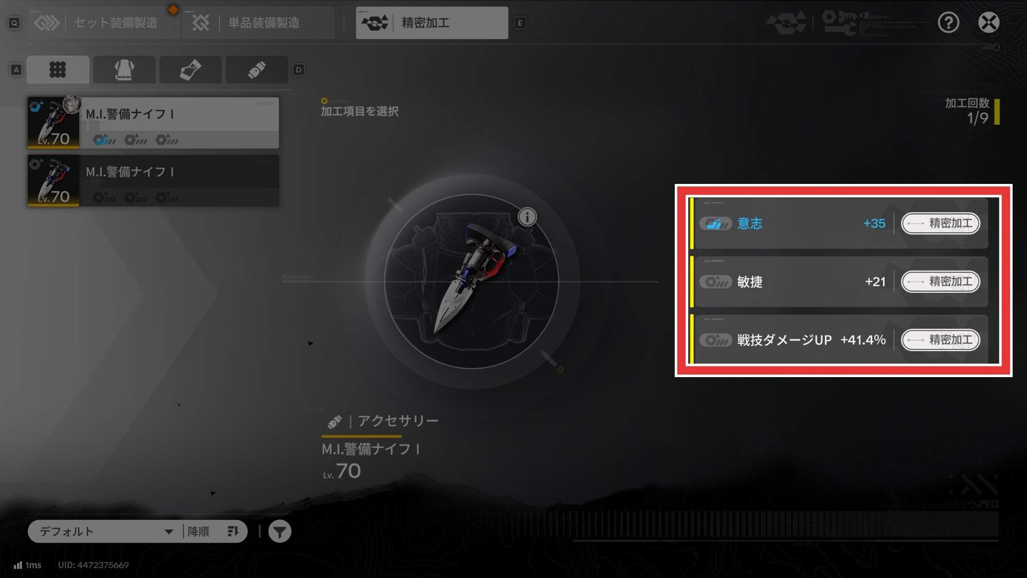 - 精密加工したい装備と同じ装備を量産する