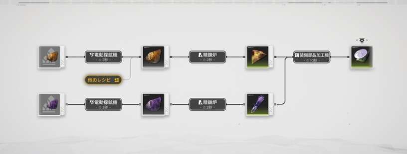 また、紫晶装備部品の作成に必要な「精錬炉」と「装備部品加工機」は、どちらも基礎工業Ⅰ内の素材加工のマスを解放すると入手可能です。