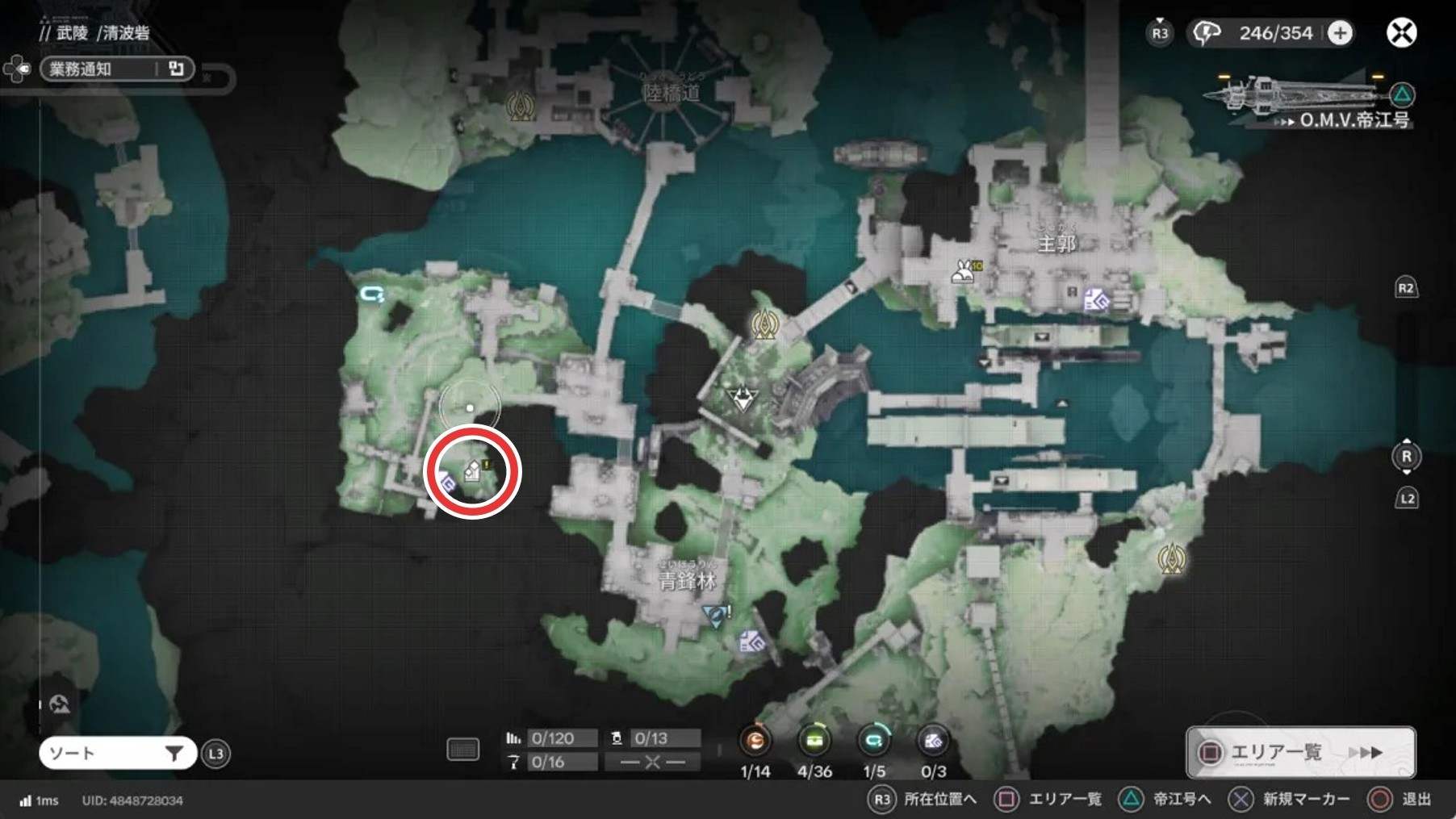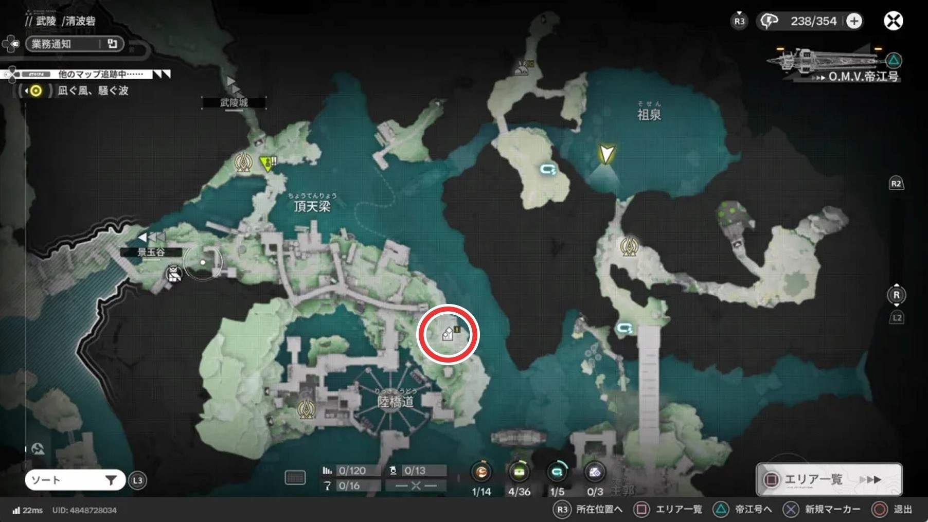 赤銅鉱物は、清波砦の2か所で入手できます。清波砦に工業エリアはないので、武陵城か景玉谷から中継タワーを繋いで電力を供給しましょう。景玉谷工業エリア北西の鉱物スポットから電力を繋ぐと近いです。