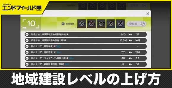 アークナイツエンドフィールドの地域建設レベルの効率的な上げ方をご紹介。デイリークエストや協約空間、マップ攻略などやるべきことや、地域建設レベルを上げるメリットについても記載しています。