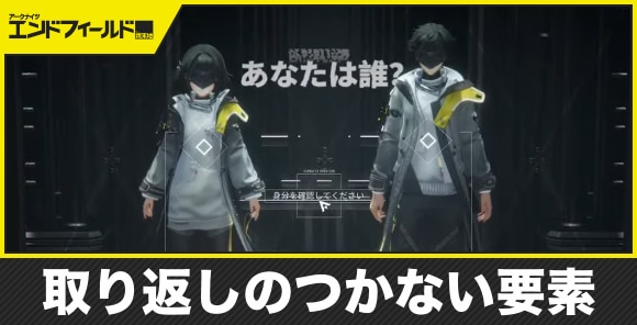 アークナイツエンドフィールドの取り返しのつかない要素を解説。サーバー選択や主人公の名前など、ゲームを進めると巻き戻せない要素について記載しています。
