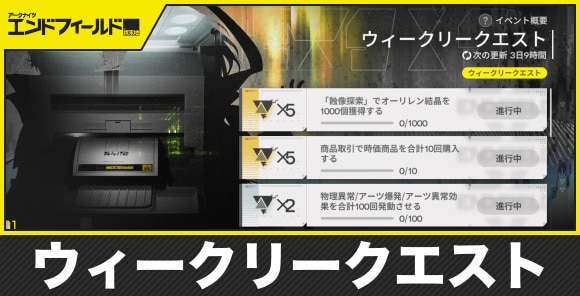 アークナイツエンドフィールドのウィークリークエストの解放条件と報酬をご紹介。ウィークリークエストの確認方法とリセットのタイミングについても記載しています。