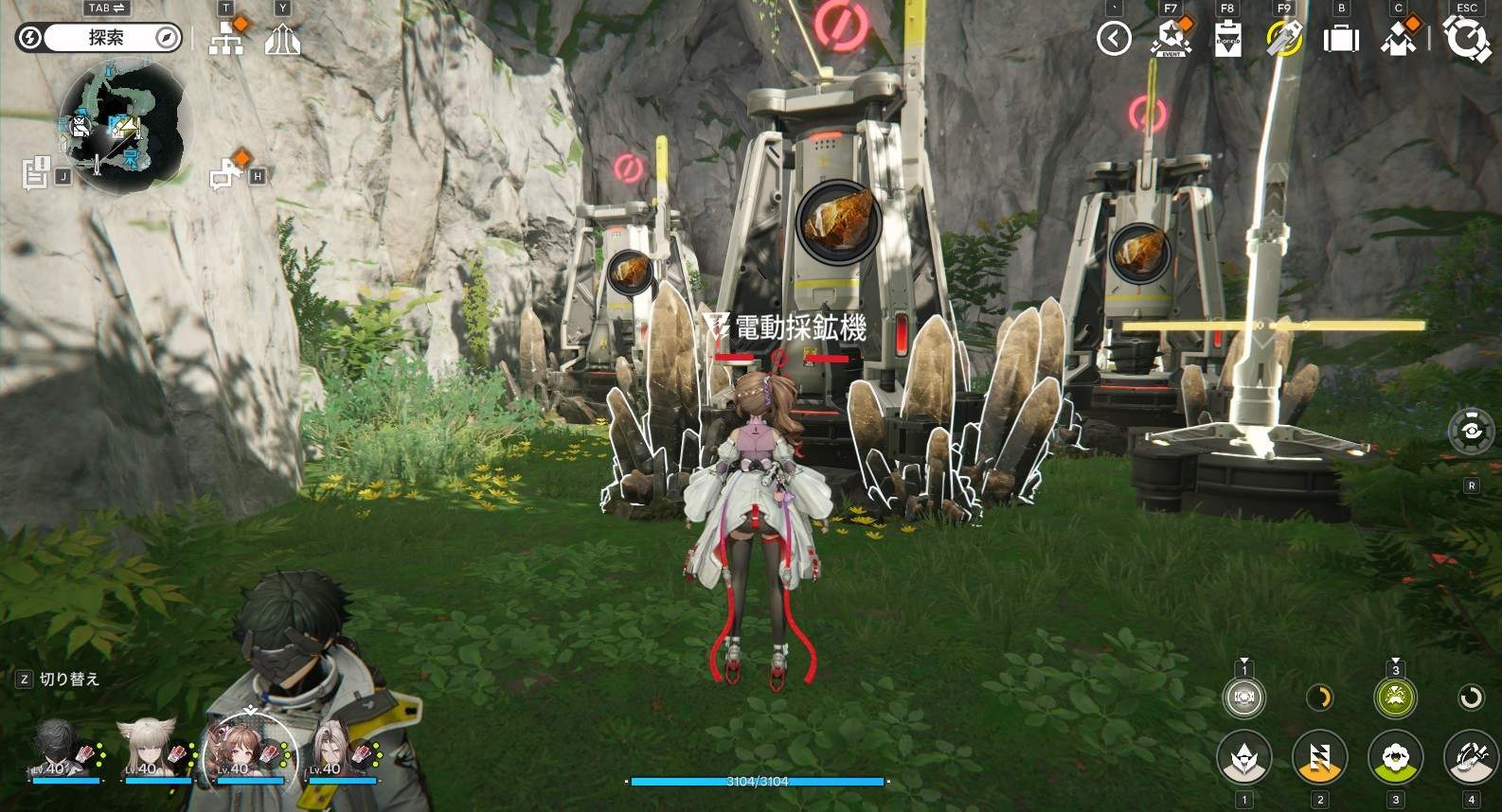 給電端末を作動させて密集鉱物スポットに飛ぶ