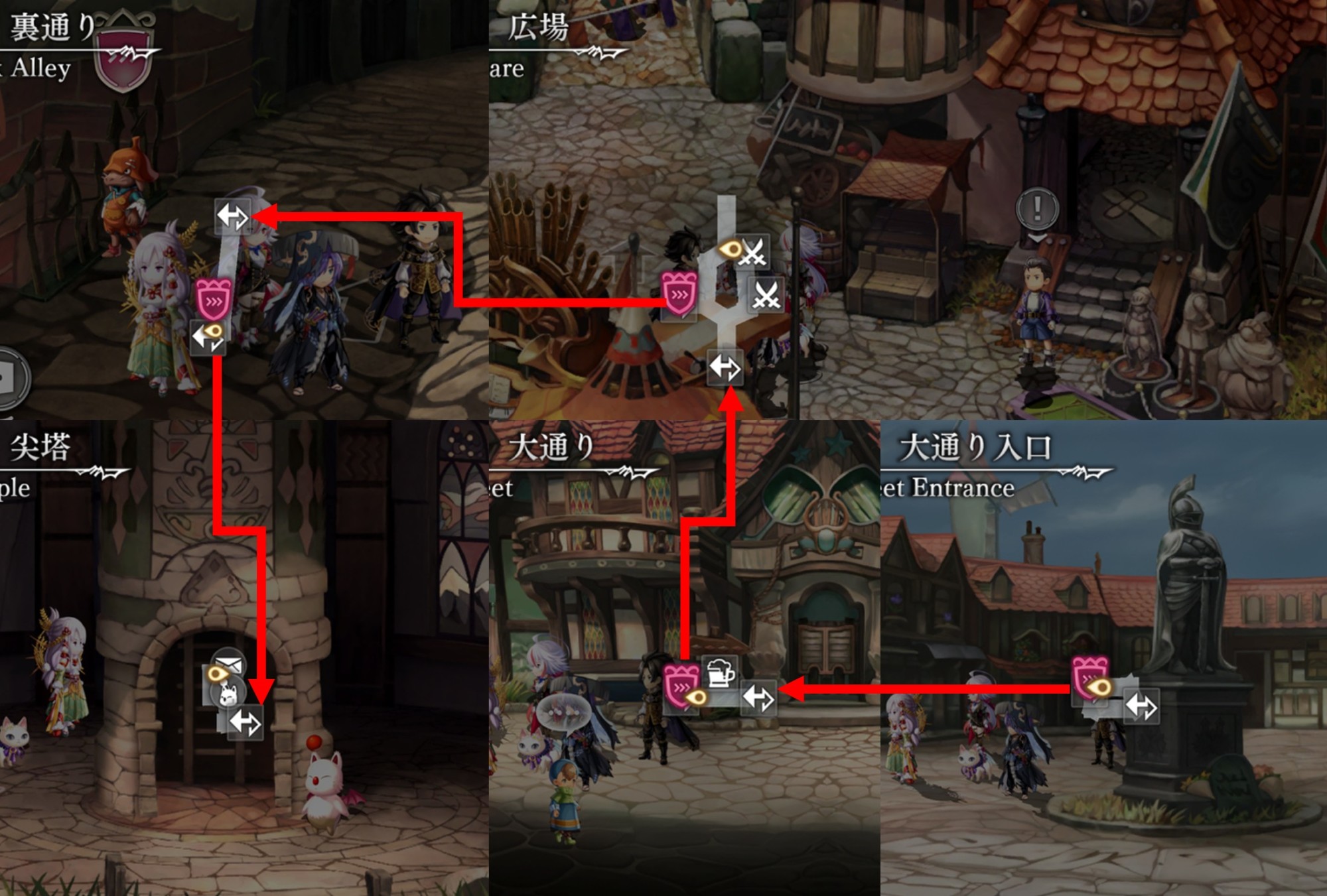 アナデン(アナザーエデン)のアレクサンドリア城下町のマップを紹介します。宝箱や隠し要素、出現モンスターの弱点や耐性も記載しています。