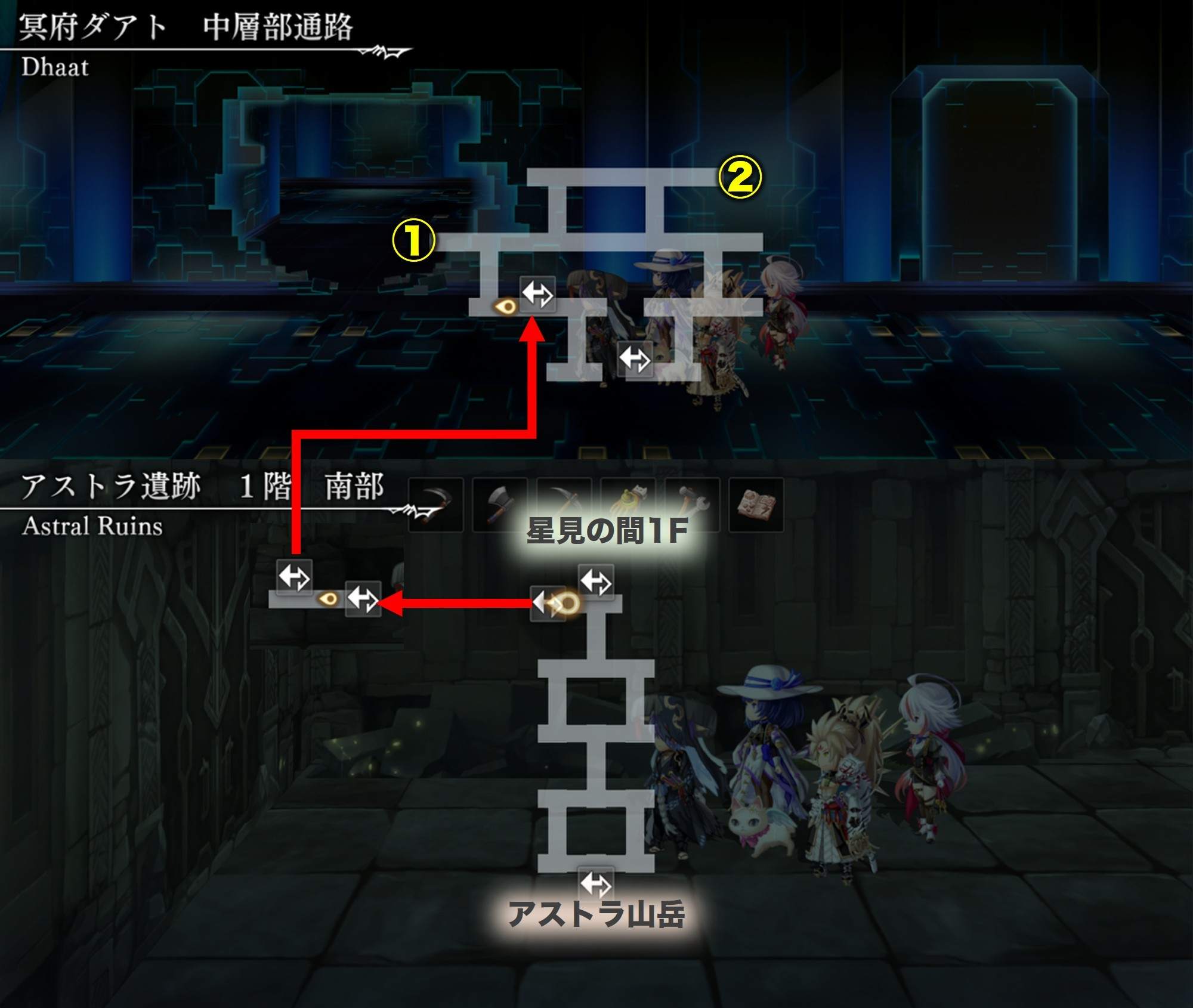 | アストラ山岳のマップ | アストラ遺跡(星見の間)のマップ | ||||