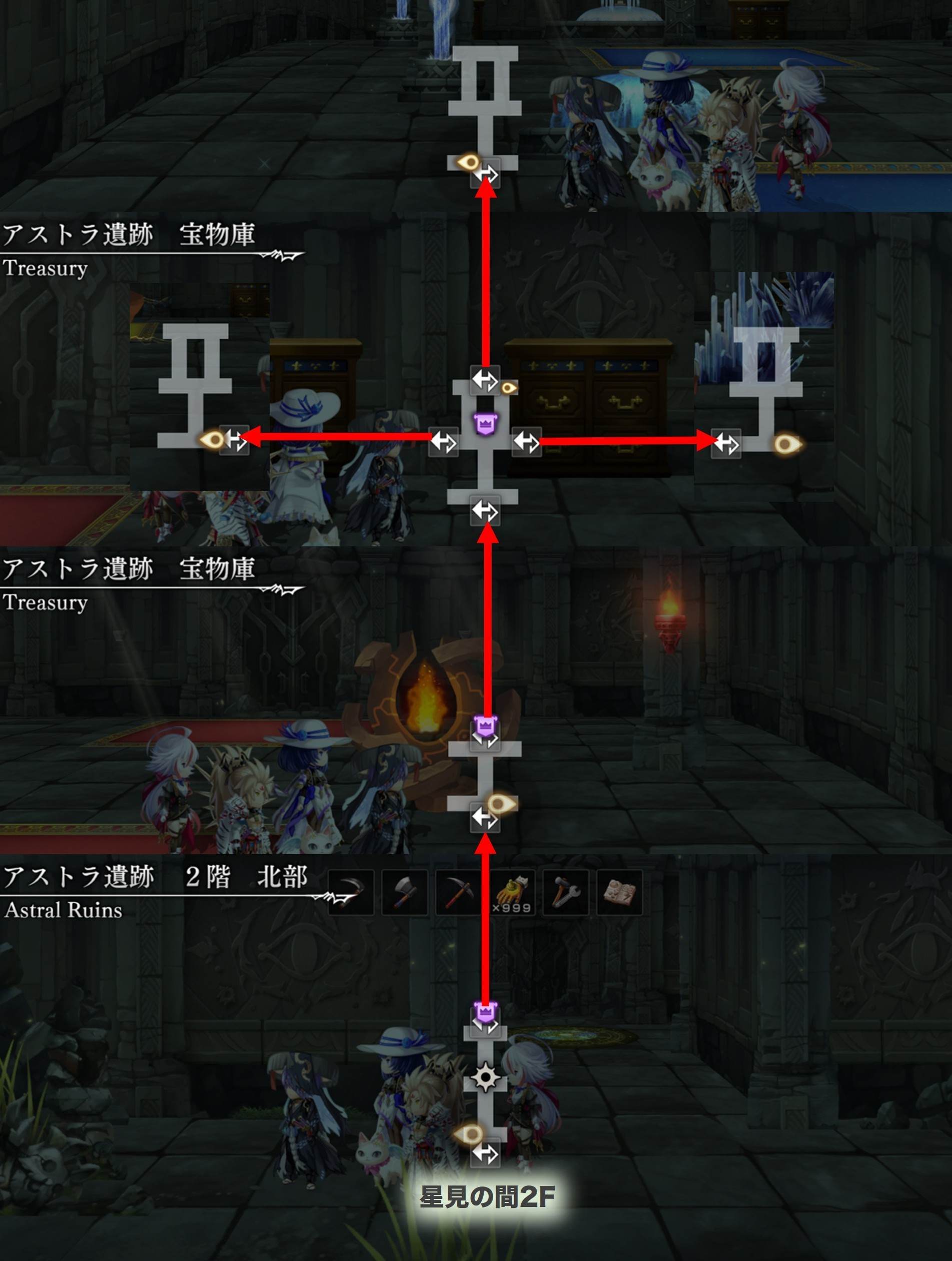 アストラ遺跡1~2階・星見の間のマップ