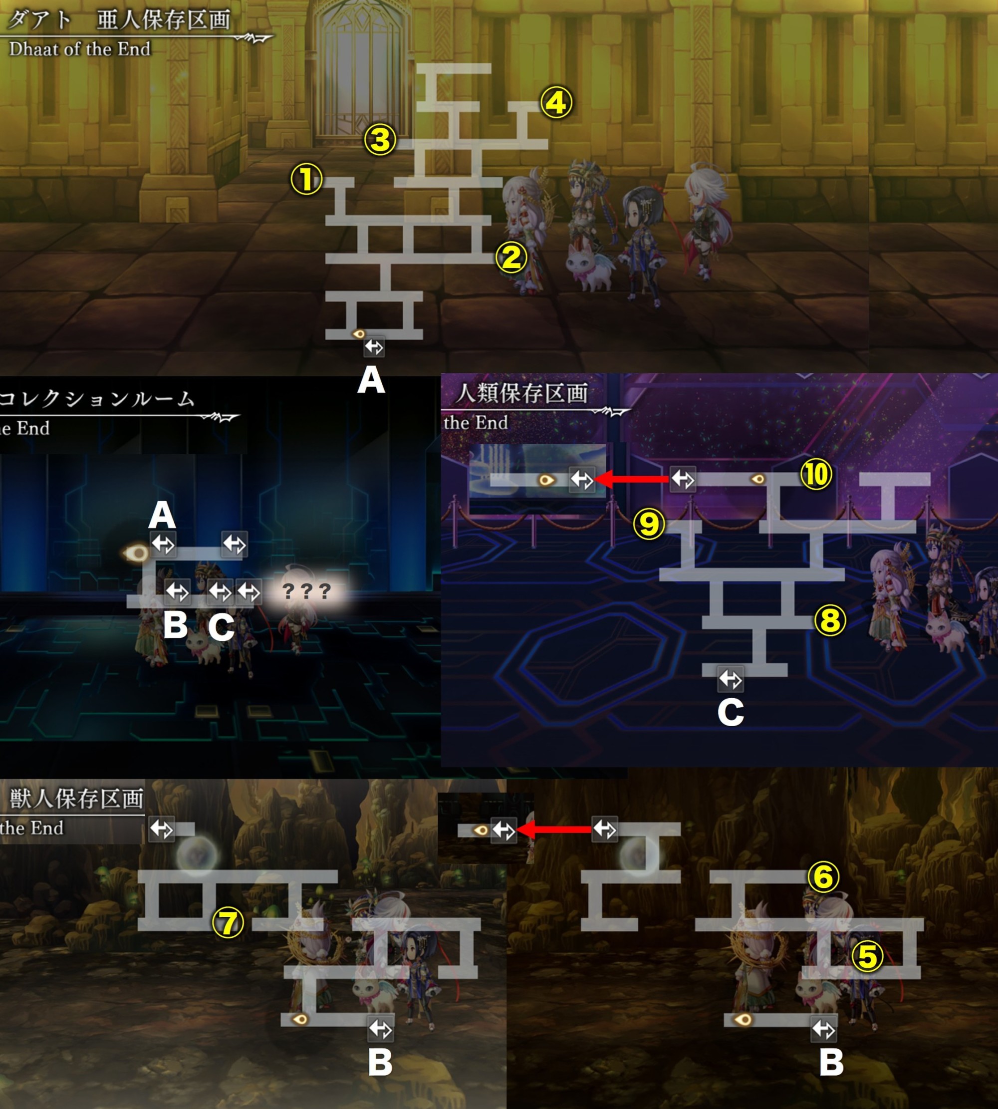 アナデン(アナザーエデン)の過日のダアト(末日のダアト)のマップを紹介します。宝箱や出現モンスターの弱点耐性についても記載しています。