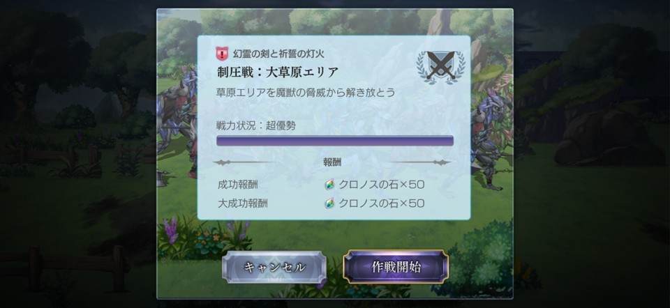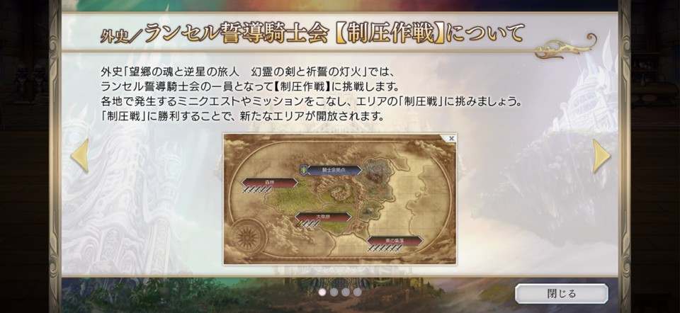 制圧作戦は、外史「望郷の魂と逆星の旅人」で発生するサブコンテンツです。外史の第1弾「幻霊の剣と祈誓の灯火」では、ストーリーの進行下で制圧作戦の攻略を求められます。