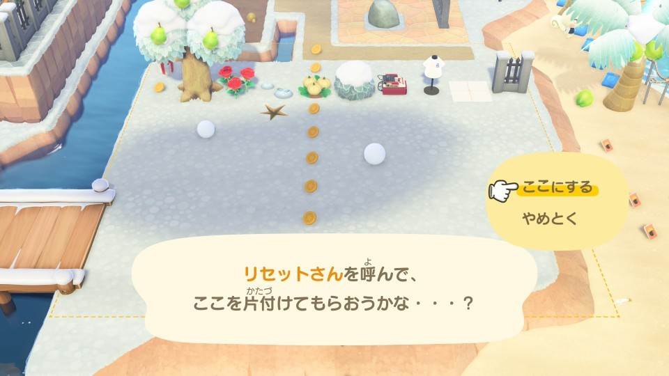 リセット片付けセンターは、飾ってあるアイテムや地面に置かれたアイテムを片付けできます。片付けたアイテムは家の収納に転送されるため、損失する心配はありません。