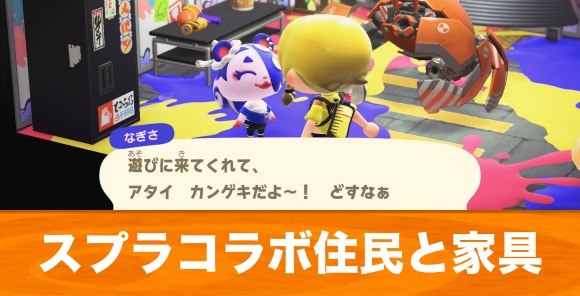 あつ森(あつまれどうぶつの森)のスプラコラボ住民と家具をご紹介。なぎさとみさきの勧誘方法やスプラトゥーン家具・衣装の入手方法に加えて、amiiboはどれが対応しているか記載しています。