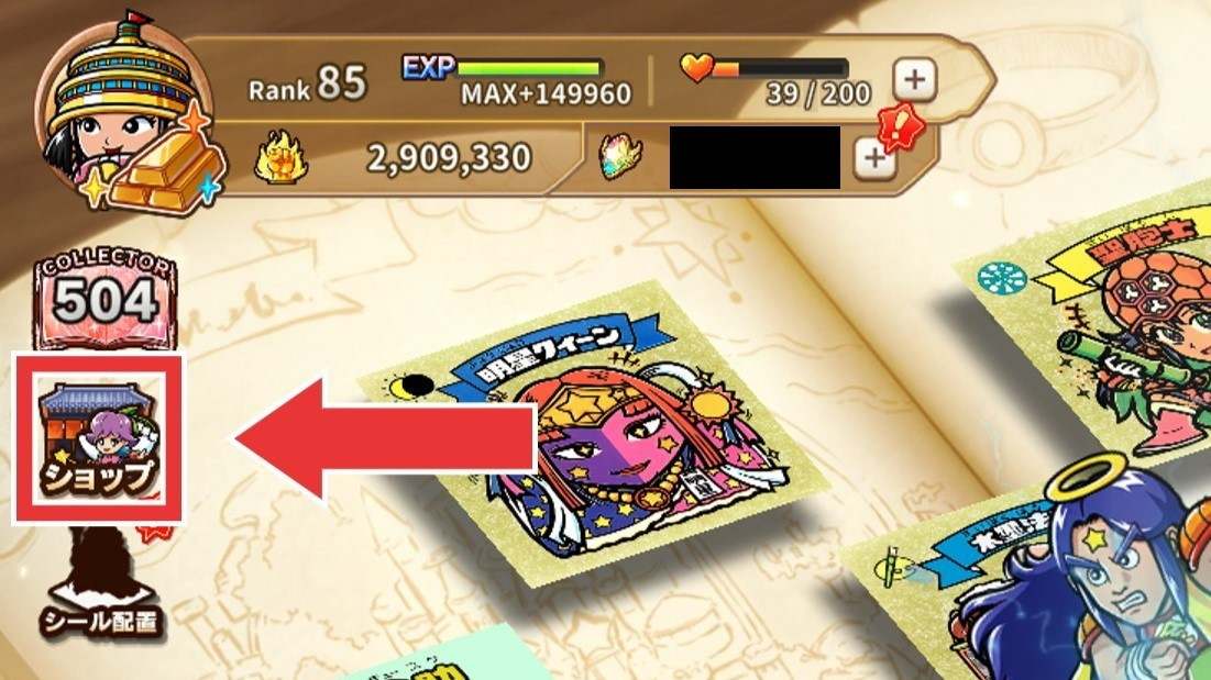 | 1 | 拡大するホーム画面左の「ショップ」をタップ |