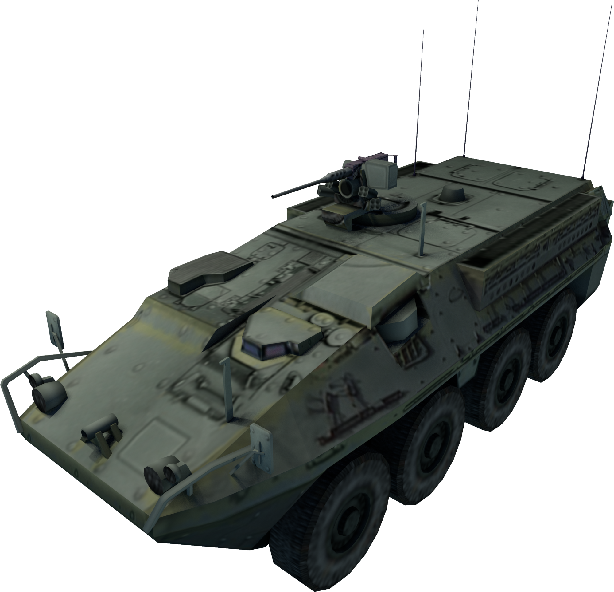 | 米国陸軍のストライカー旅団戦闘団の基幹となる8輪駆動の装輪装甲車。輸送機による空輸を可能とする高い戦略機動性を持ち、車内モニターを見ながら遠隔操作可能な重323などを装備している。 | ||