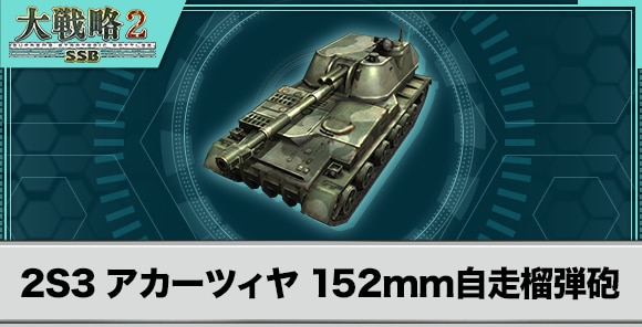 大戦略SSB2の2S3 アカーツィヤ 152mm自走榴弾砲の性能と武装を紹介しています。2S3 アカーツィヤ 152mm自走榴弾砲の移動力や兵器性能、特殊能力についても記載しています。