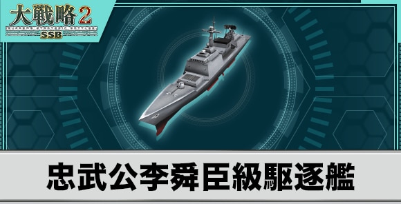 大戦略SSB2の忠武公李舜臣級駆逐艦の性能と武装を紹介しています。忠武公李舜臣級駆逐艦の移動力や兵器性能、特殊能力についても記載しています。