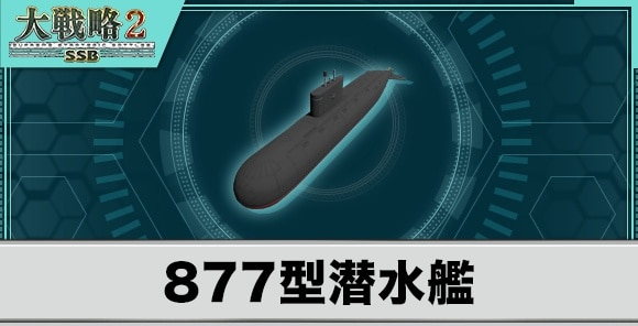 大戦略SSB2の877型潜水艦の性能と武装を紹介しています。877型潜水艦の移動力や兵器性能、特殊能力についても記載しています。