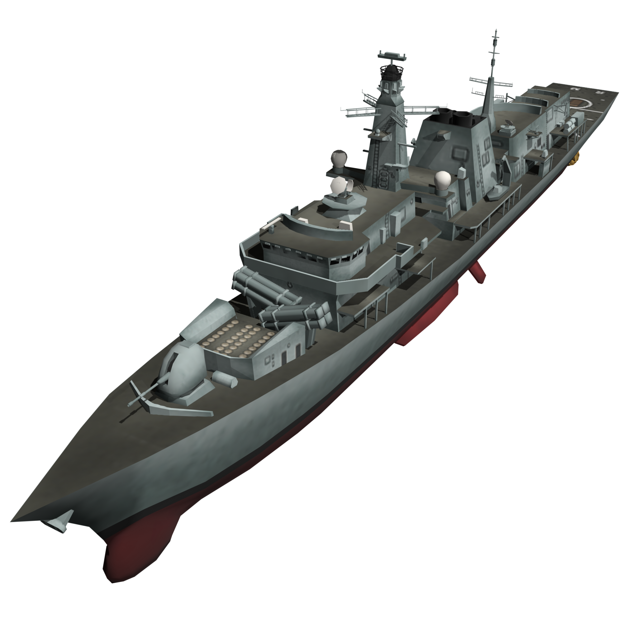| イギリス海軍の主力フリゲート(デューク級)。冷戦期に開発され、対潜水艦戦闘能力を重視。艦対空ミサイル「シーウルフ」や対艦ミサイル「ハープーン」を搭載し、艦隊防空と対水上・対潜任務を担う。 | ||