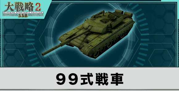 大戦略SSB2の99式戦車の性能と武装を紹介しています。99式戦車の移動力や兵器性能、特殊能力についても記載しています。