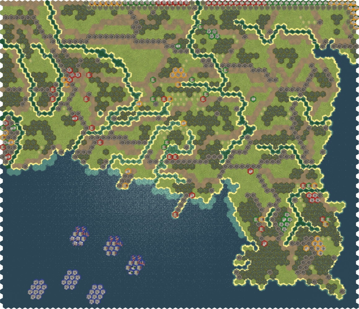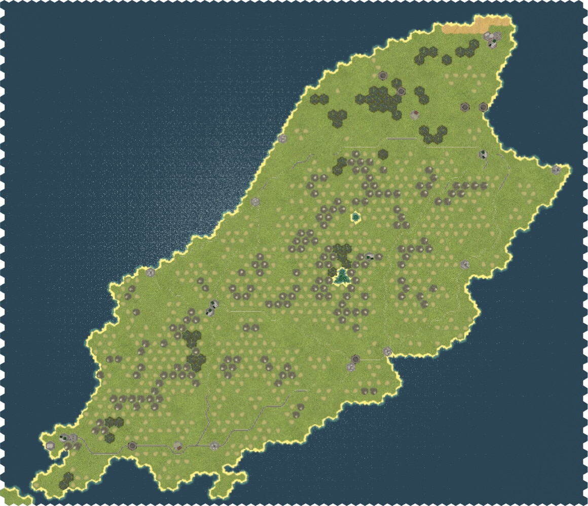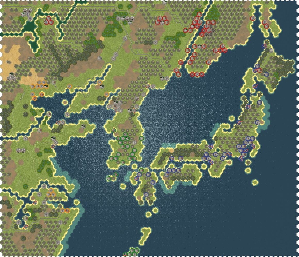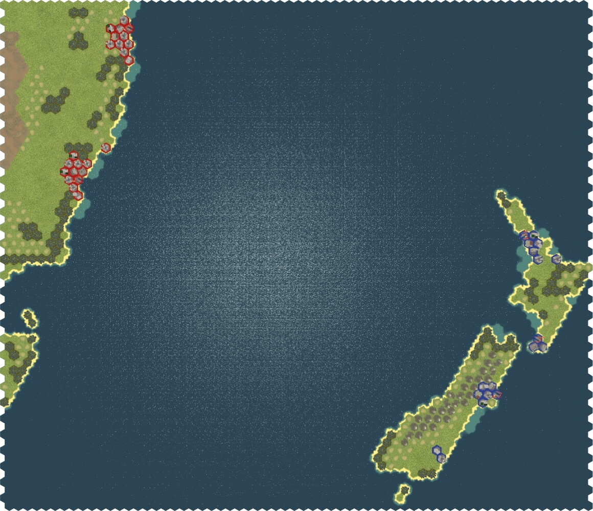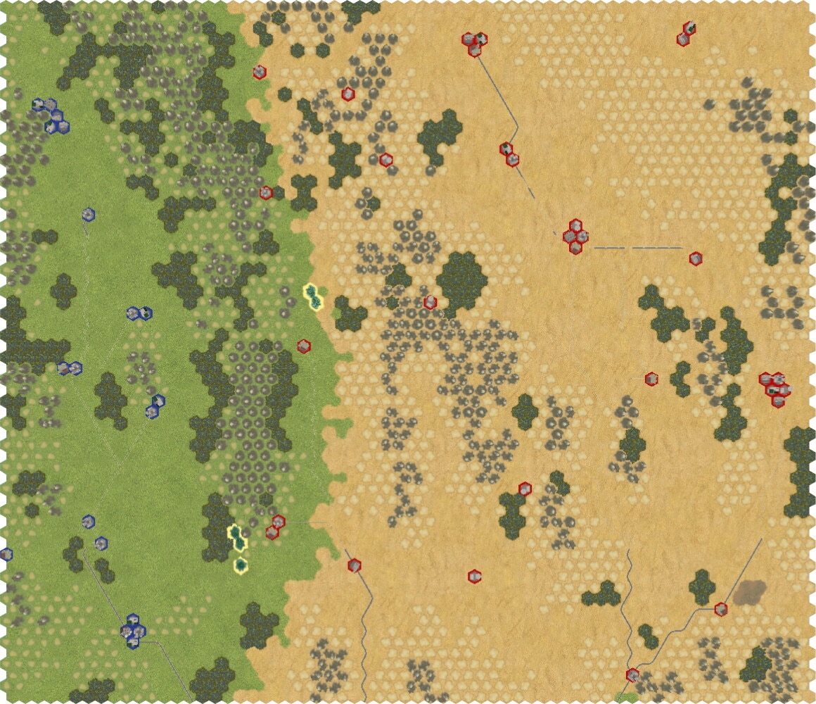 大戦略では、定番中の定番マップ。ああ、懐かしき故郷。全ての戦いは、ここからはじまった。見慣れたマップに新たな戦略!目指せ、ダイセンリャカー! |