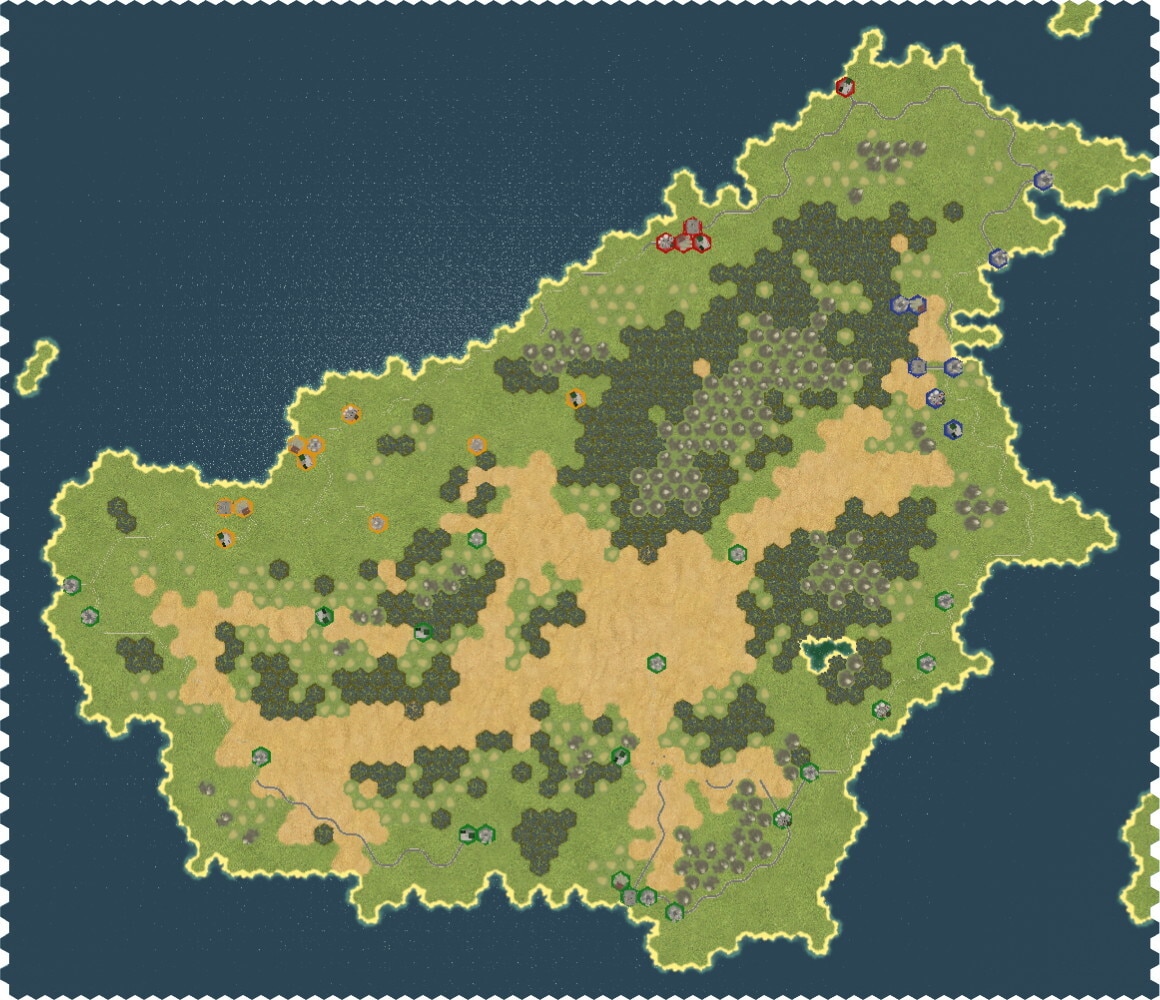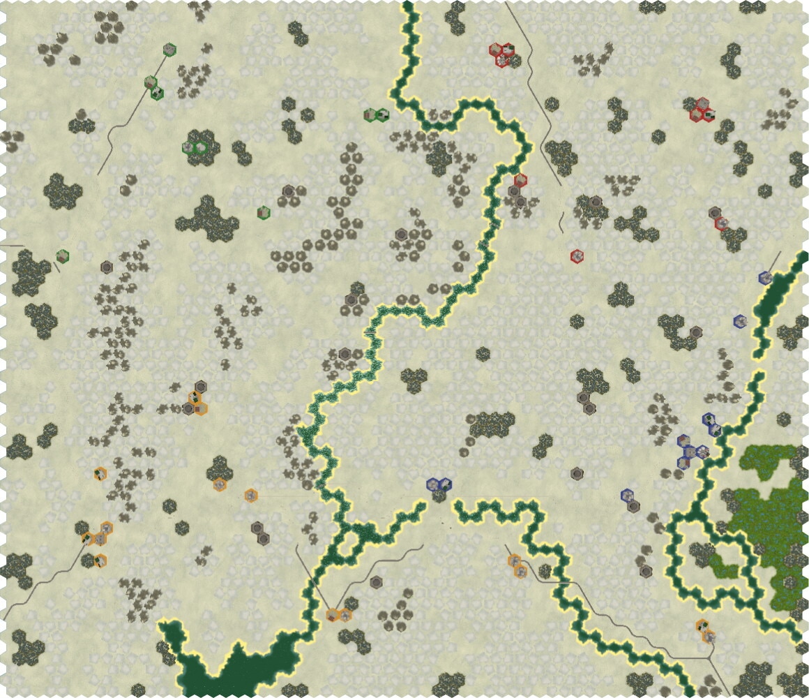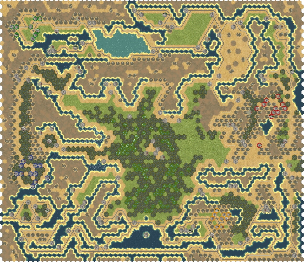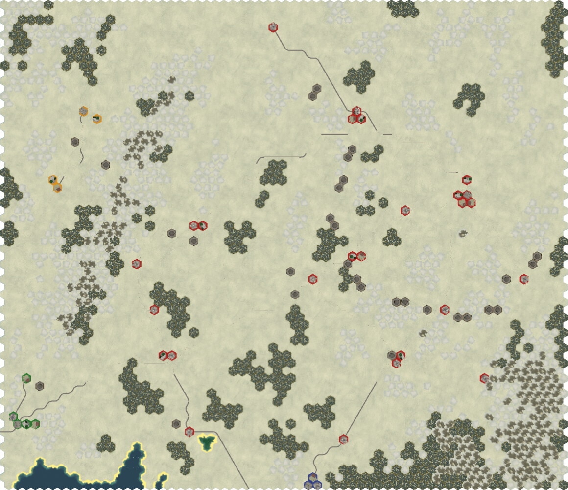大戦略では、定番中の定番マップ。ああ、懐かしき故郷。全ての戦いは、ここからはじまった。見慣れたマップに新たな戦略!目指せ、ダイセンリャカー! |