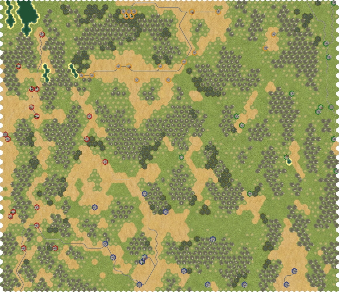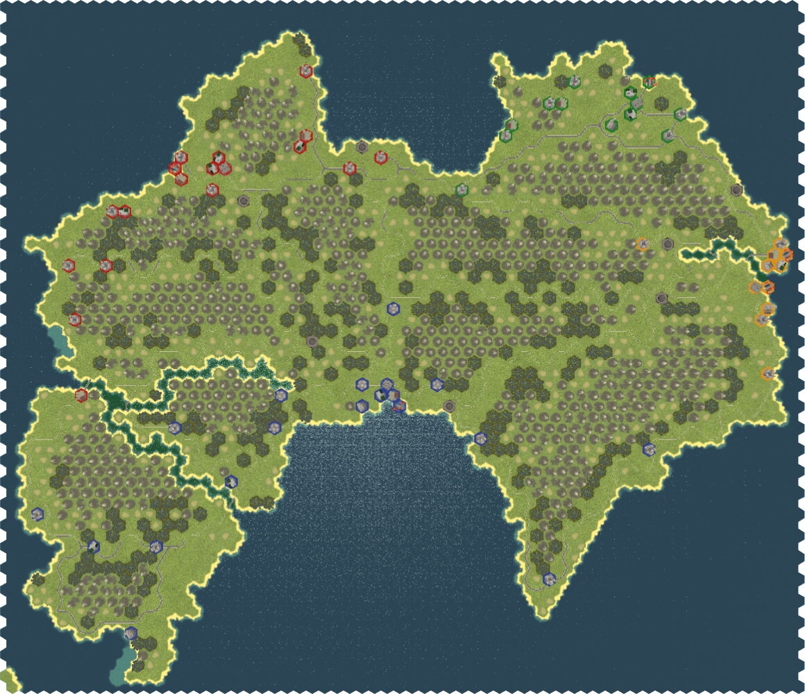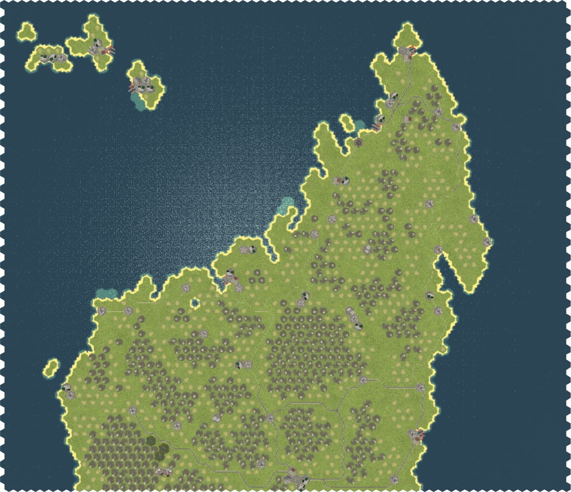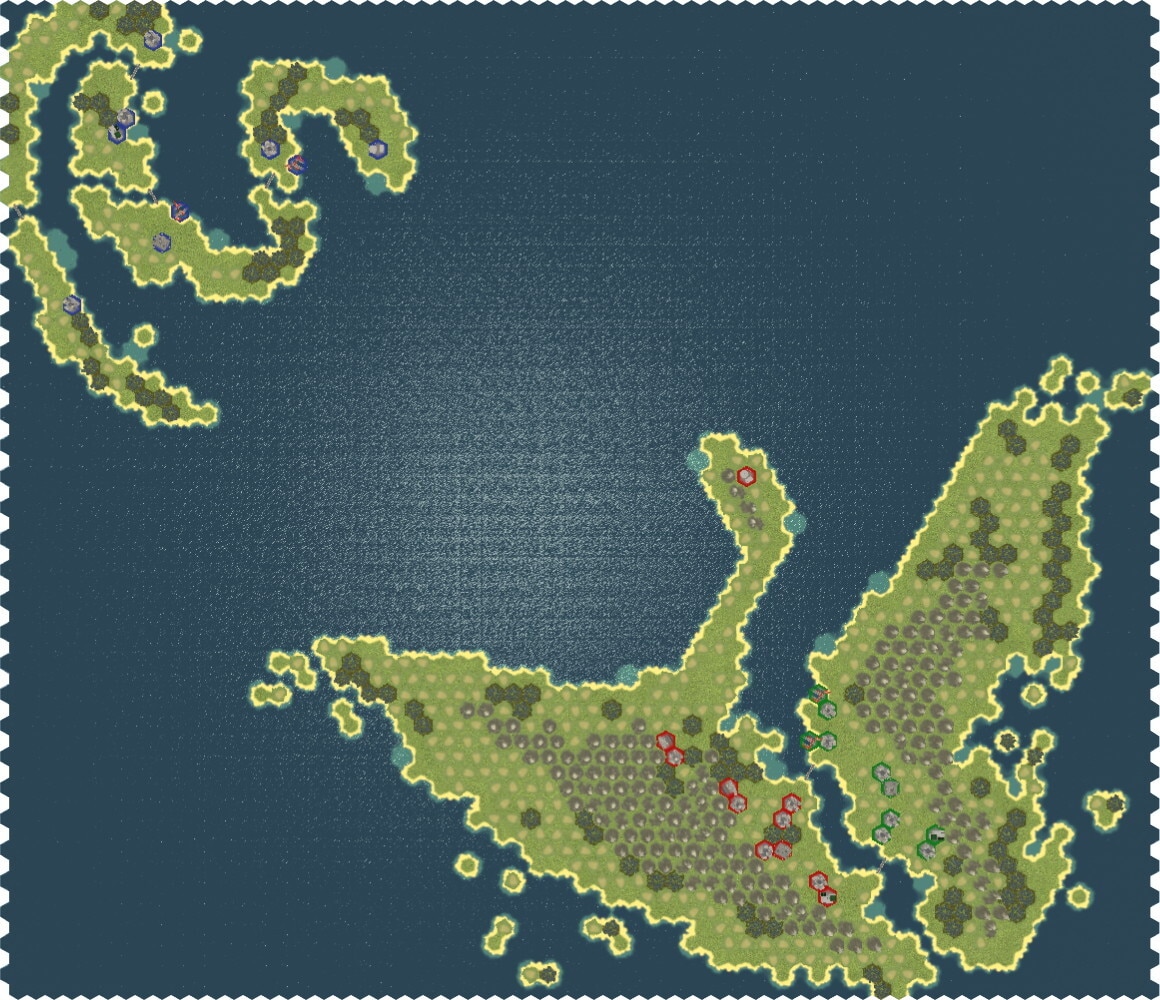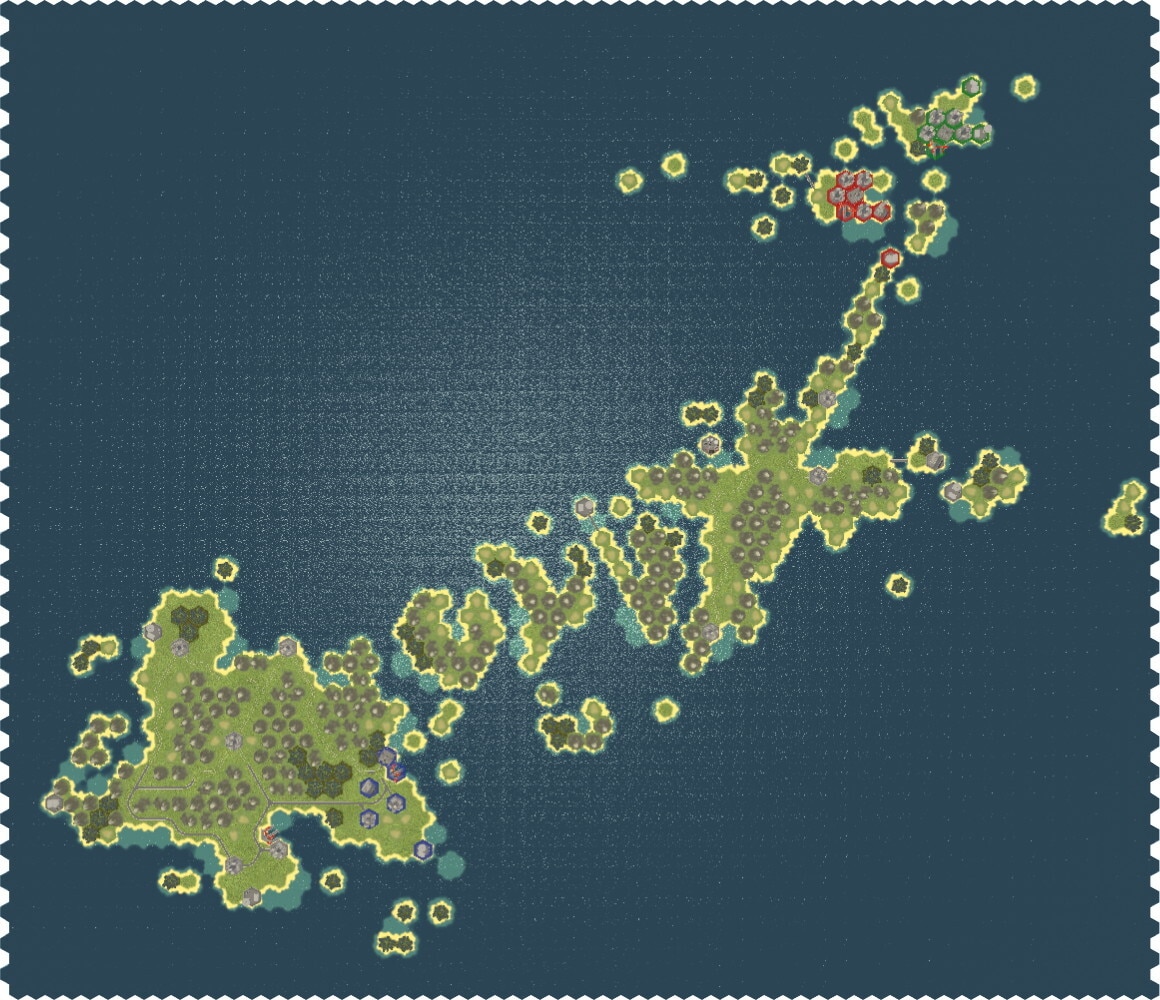 大戦略では、定番中の定番マップ。ああ、懐かしき故郷。全ての戦いは、ここからはじまった。見慣れたマップに新たな戦略!目指せ、ダイセンリャカー! |