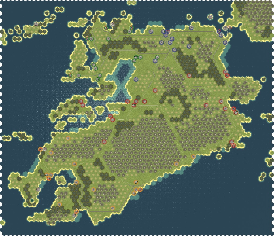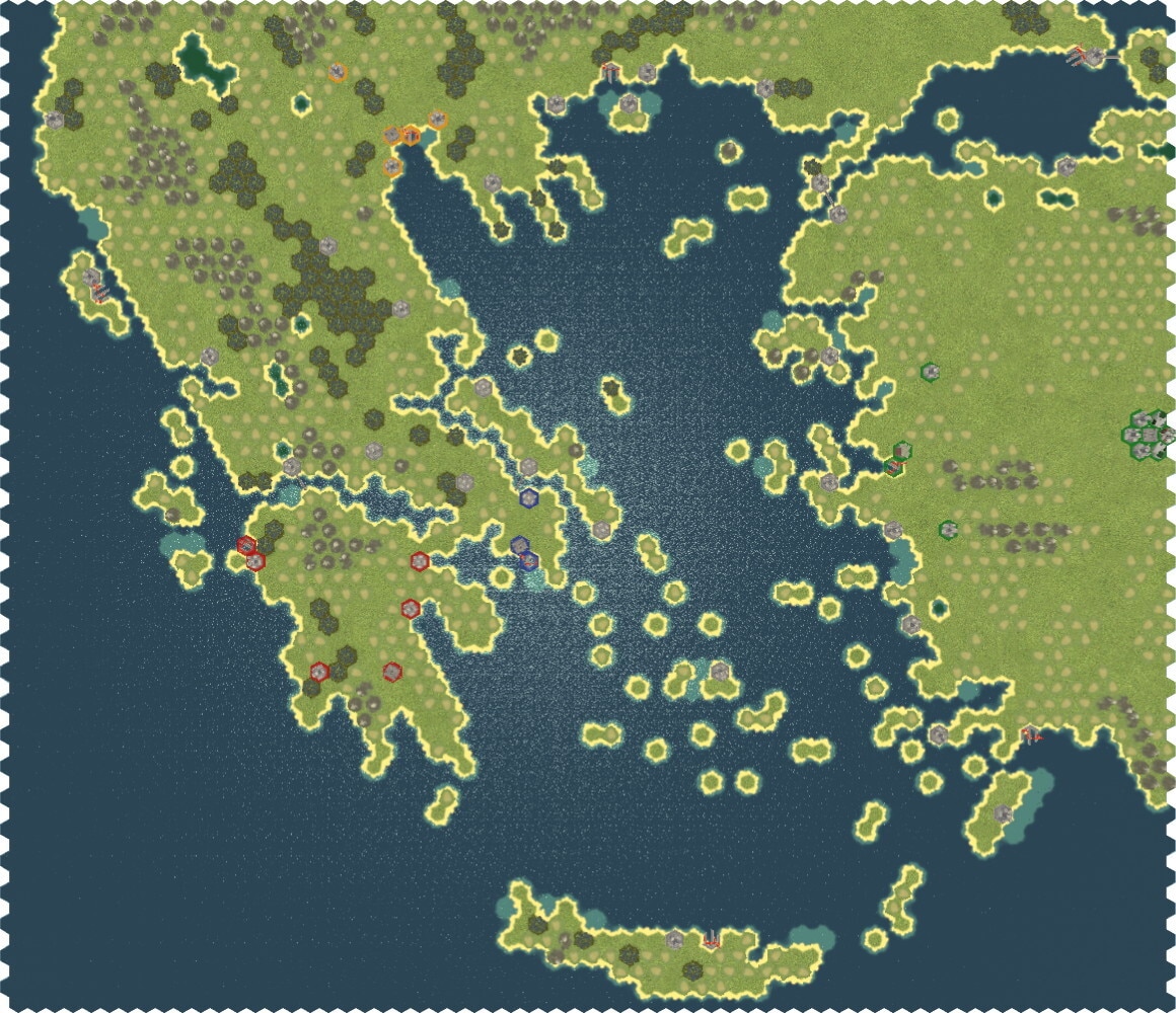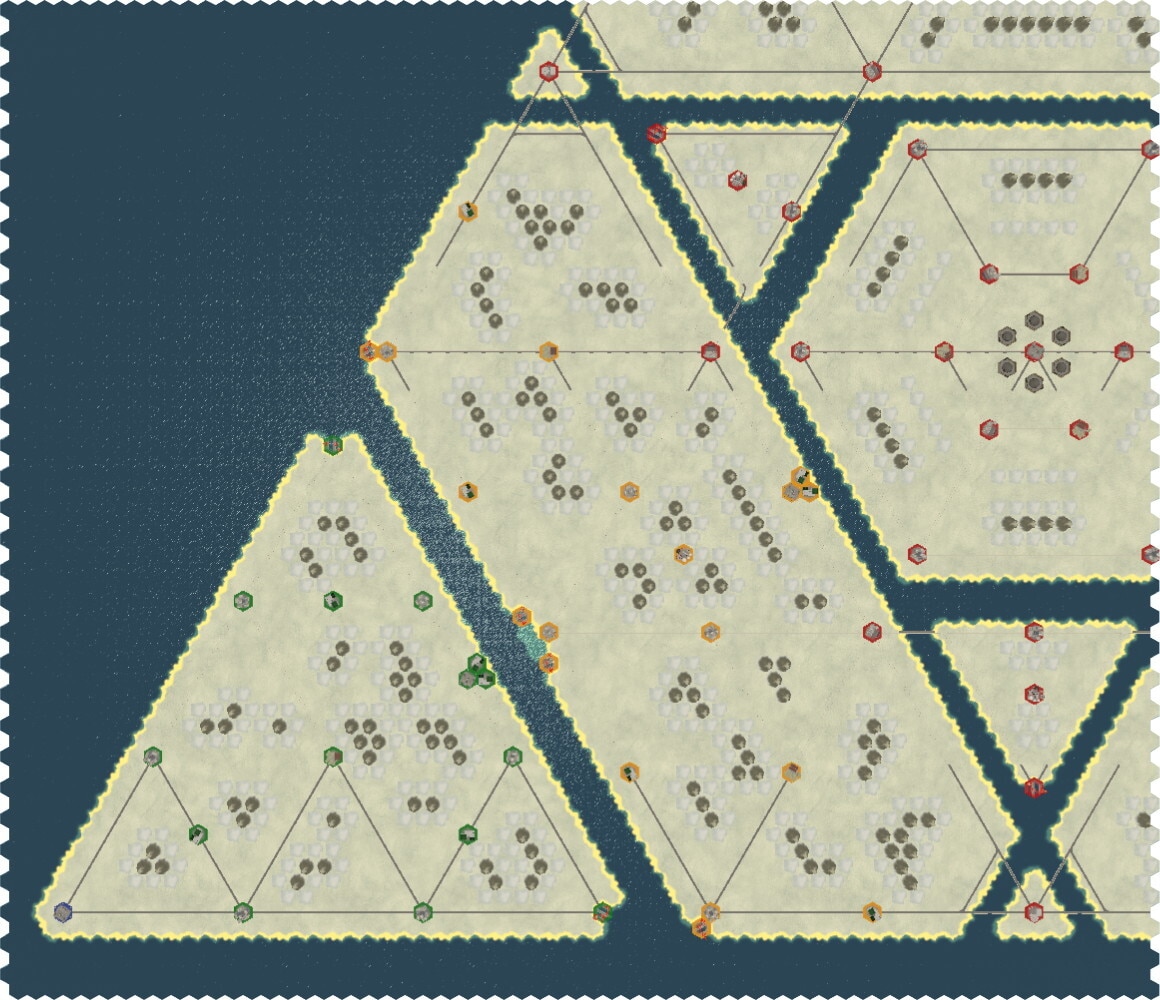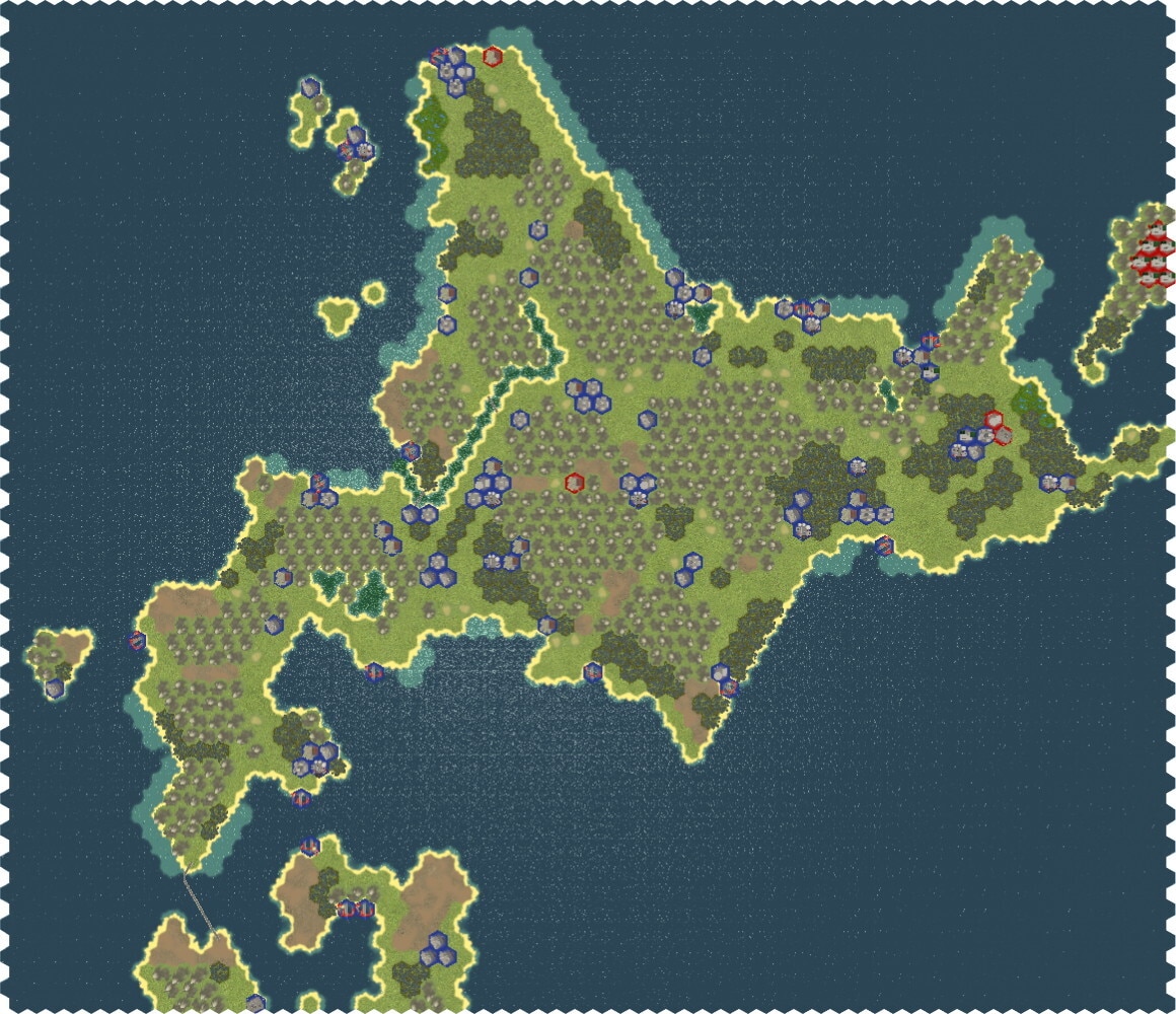 大戦略では、定番中の定番マップ。ああ、懐かしき故郷。全ての戦いは、ここからはじまった。見慣れたマップに新たな戦略!目指せ、ダイセンリャカー! |
