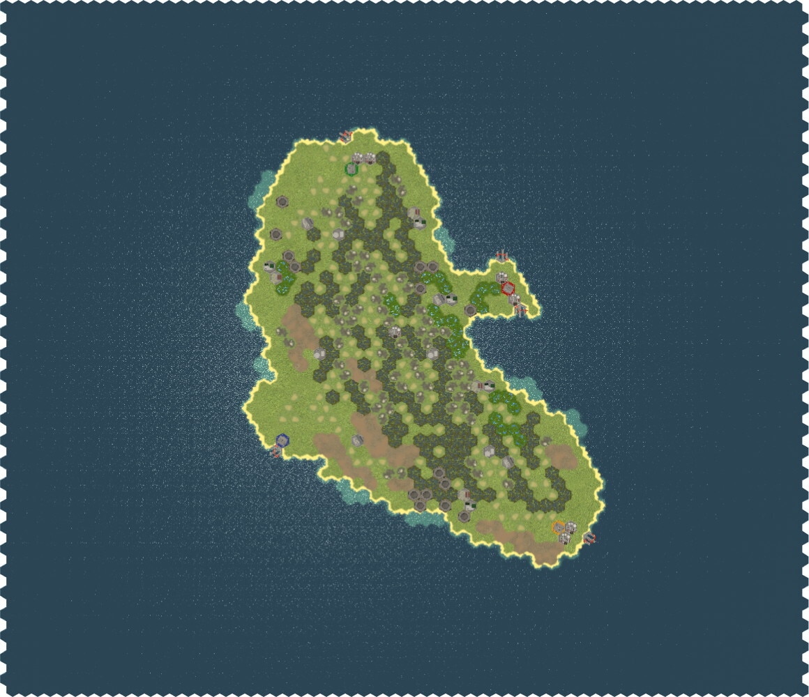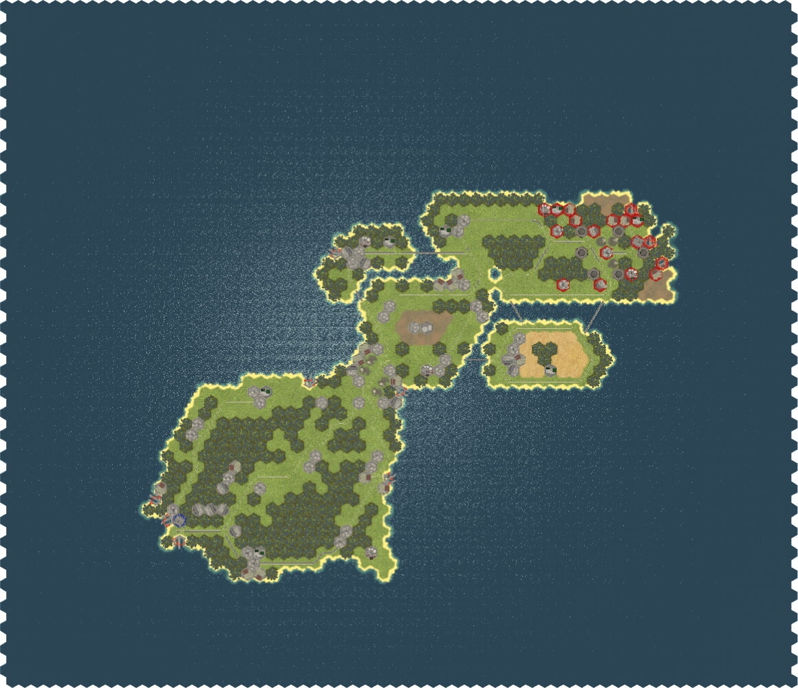 小さな島での4勢力の争乱マップ。軍事基地、山岳地帯、密林…多彩な地形で戦略は激化していく。支配拠点を確保し、敵を殲滅するのだ!激進せよ!!今こそ、エロマンゴ島の王となれ! |