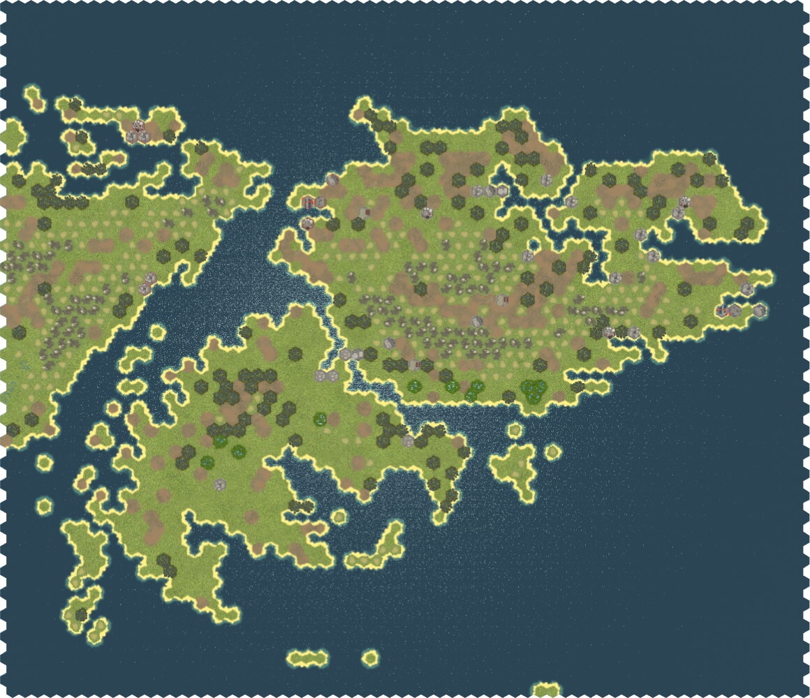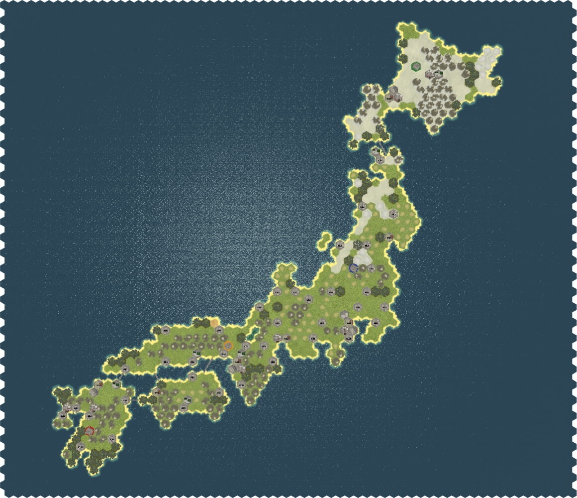 この地域では、小島を囲う三島の各勢力が統一を目指し争っている。小島には旧勢力が残した建物が残されているので、うまく活用しよう。 |