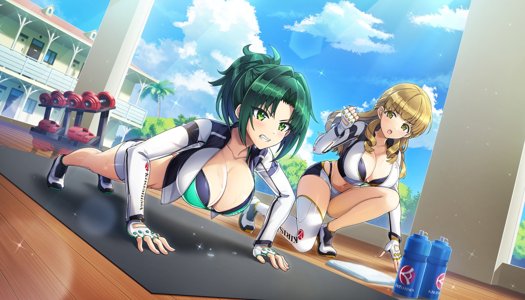 ズルしたら最初からやかい、気抜かんでね!」 「ああ、わかってるって……やってやるよ!」 詩絵の熱い応援を受けながら 筋力トレーニングに挑む、杏里。 この先、再び大きな試練に直面したとしても 信頼し合える仲間と一緒ならば きっと乗り越えることが出来るはずだ。 |