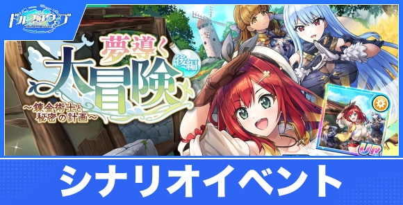 ドルフィンウェーブ(ドルウェブ)の夢導く大冒険~錬金術士と秘密の計画~の攻略情報を紹介。イベントの効率的な進め方や特効キャラについても記載しています。