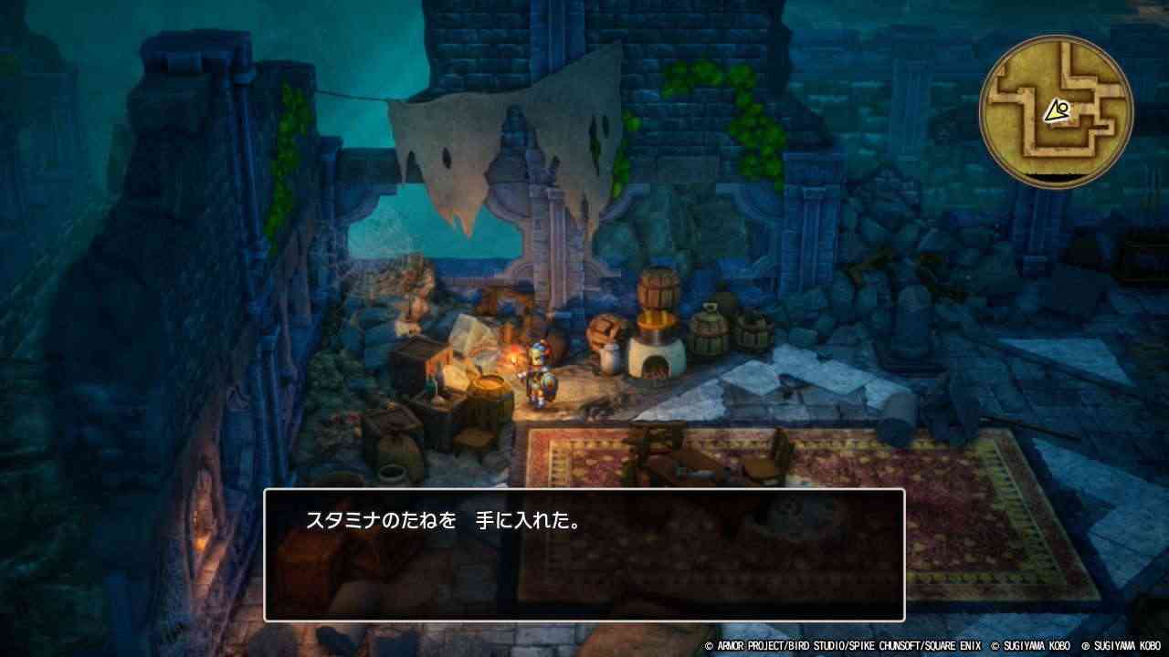 岩山の洞窟では、B2Fの宝箱やタルからアイテムを回収しましょう。特に主人公を強化するスタミナのたねは、どこの町にも販売していない貴重なアイテムです。