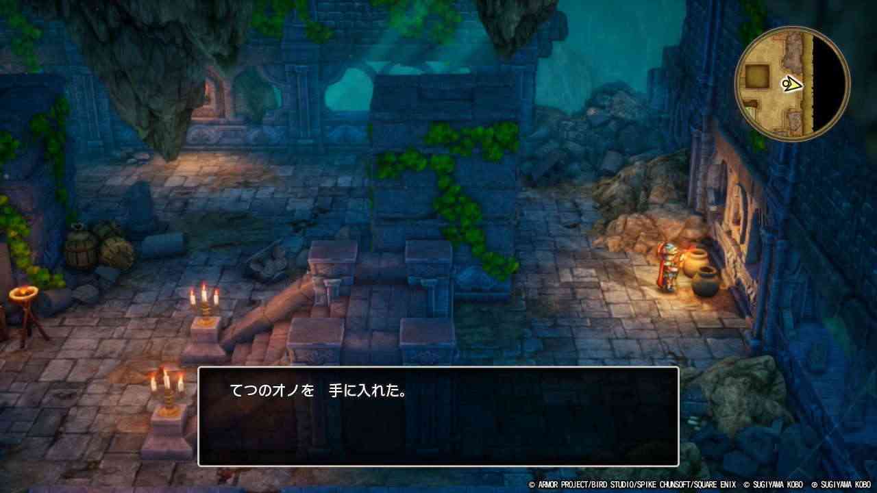 岩山の洞窟は、マップ西側にあるダンジョンです。岩山の洞窟ではストーリー攻略に必要なアイテムはありませんが、てつのたてやちからのたねなどの主人公を強化するアイテムを多く入手できます。