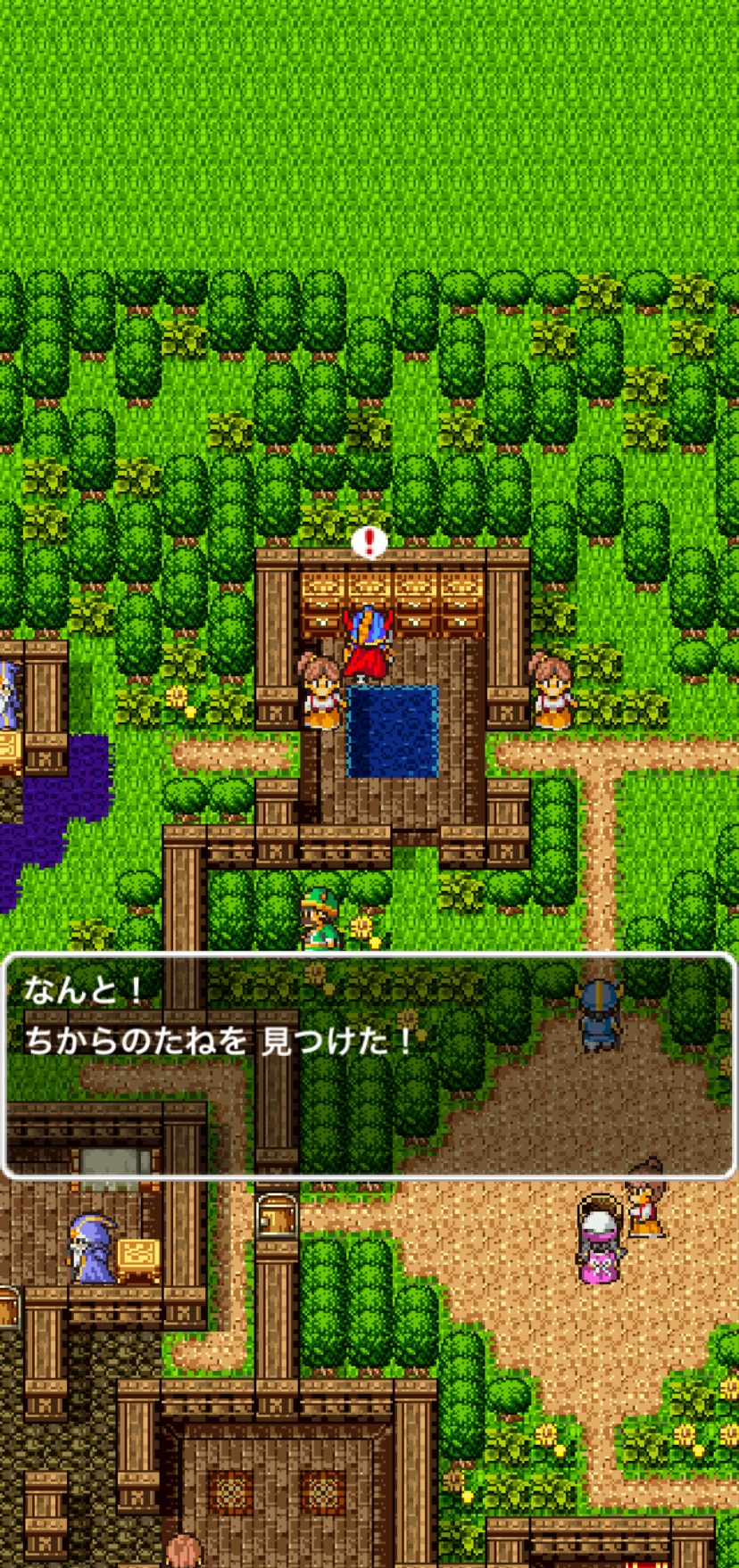 マイラの村は中央の光っている部分を調べるとようせいのふえを入手できます。ようせいのふえは、メルキドの町前のゴーレム戦で有効なため、必ず入手しましょう。