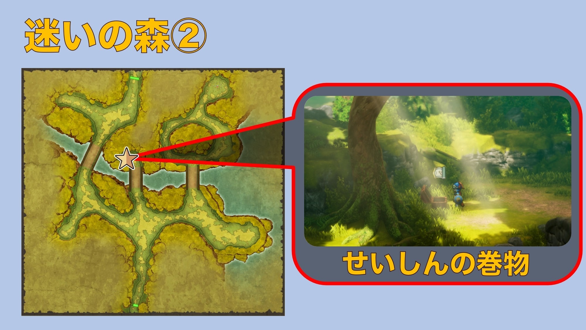 せいしんの巻物は、迷いの森で入手できます。せいしんとういつは、継続MP回復効果の他に超絶技の発動条件にもなっている呪文です。効果発動中は、攻撃系の特技と呪文を超絶技として発動できます。