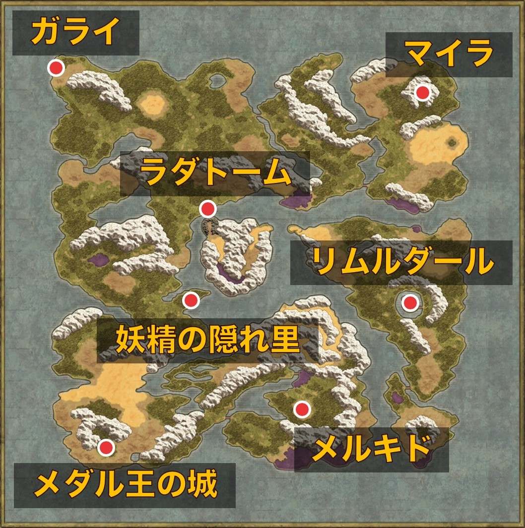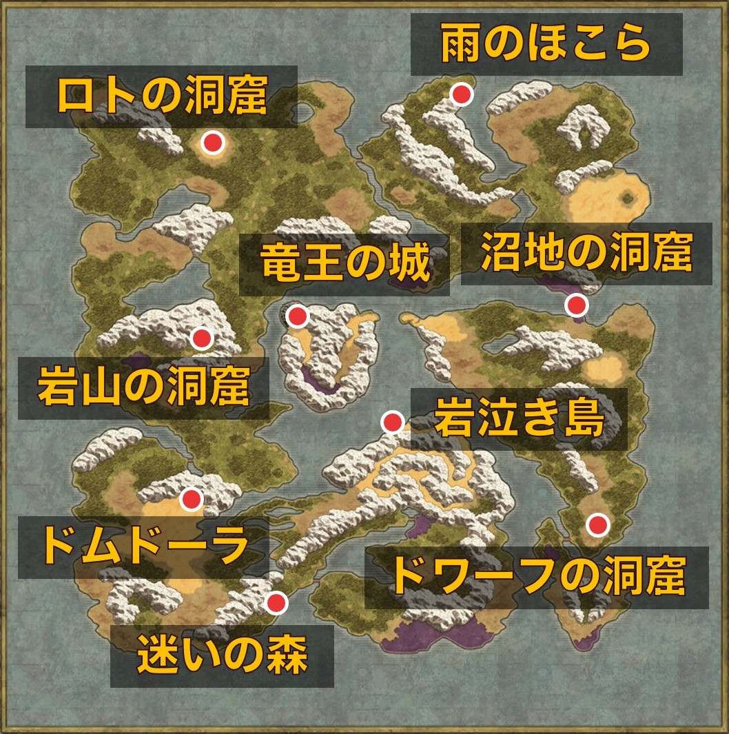 ドラクエ1リメイク(DQ1リメイク)のワールドマップ(世界地図)一覧です。町やほこら、ダンジョンについても記載しています。