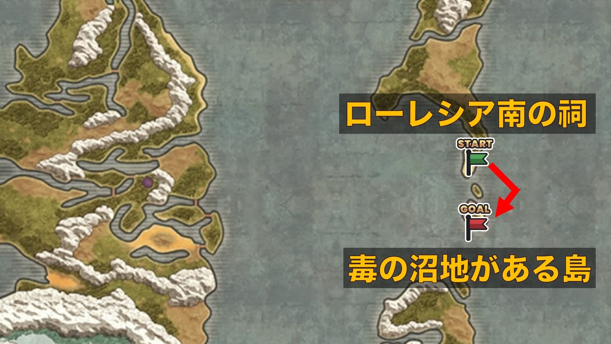 船入手後のあなほりおすすめ場所は、みずのはごろもを入手できるローレシア南にある毒島です。みずのはごろもは、呪文とブレスによるダメージを軽減できる最強レベルの防具のため、船を入手したら最優先で入手しましょう。