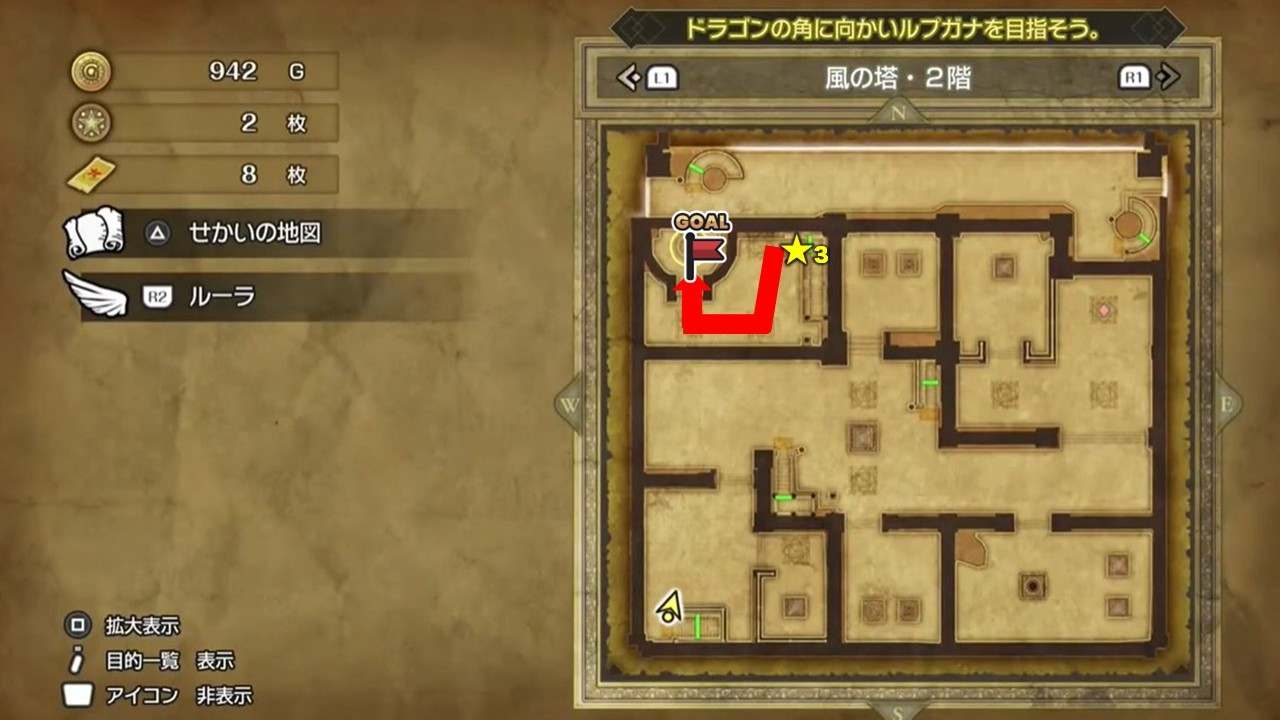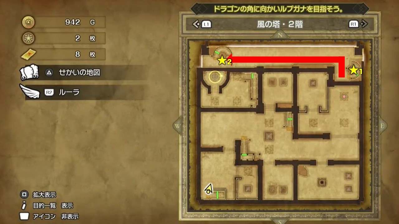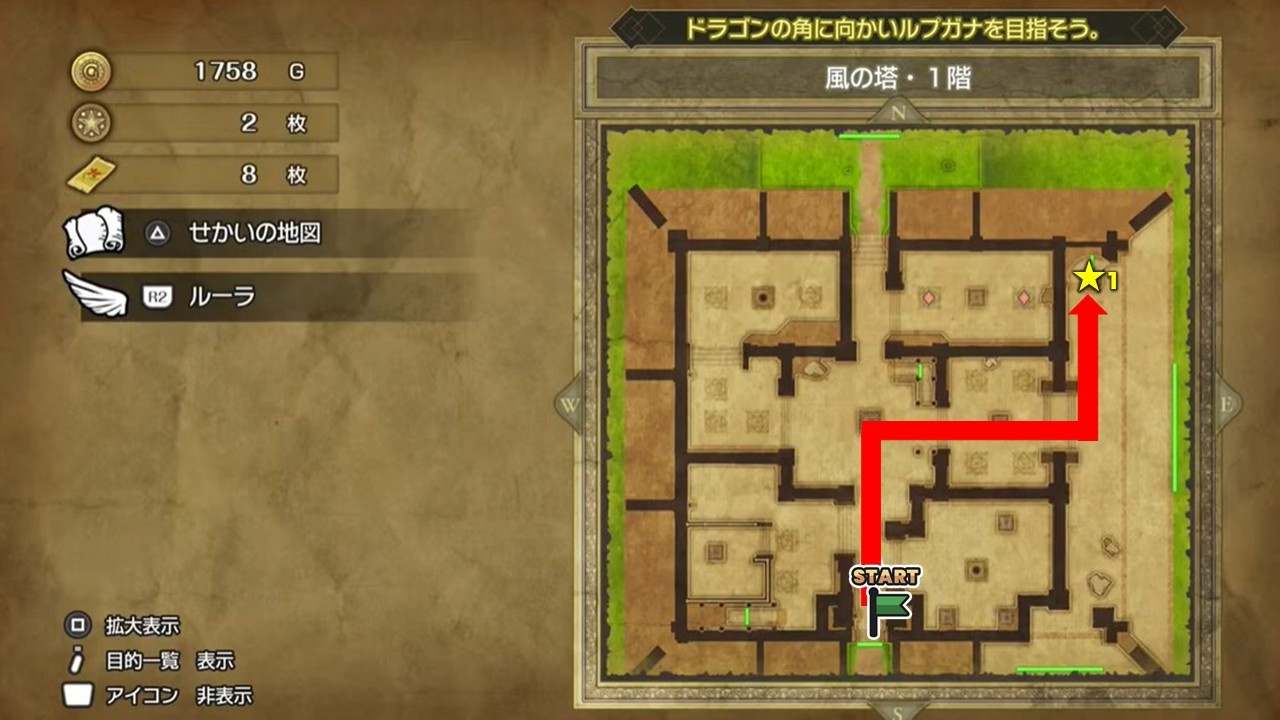 | 1 | ローラの門へ進む →キメラのつばさがあると移動が楽 |