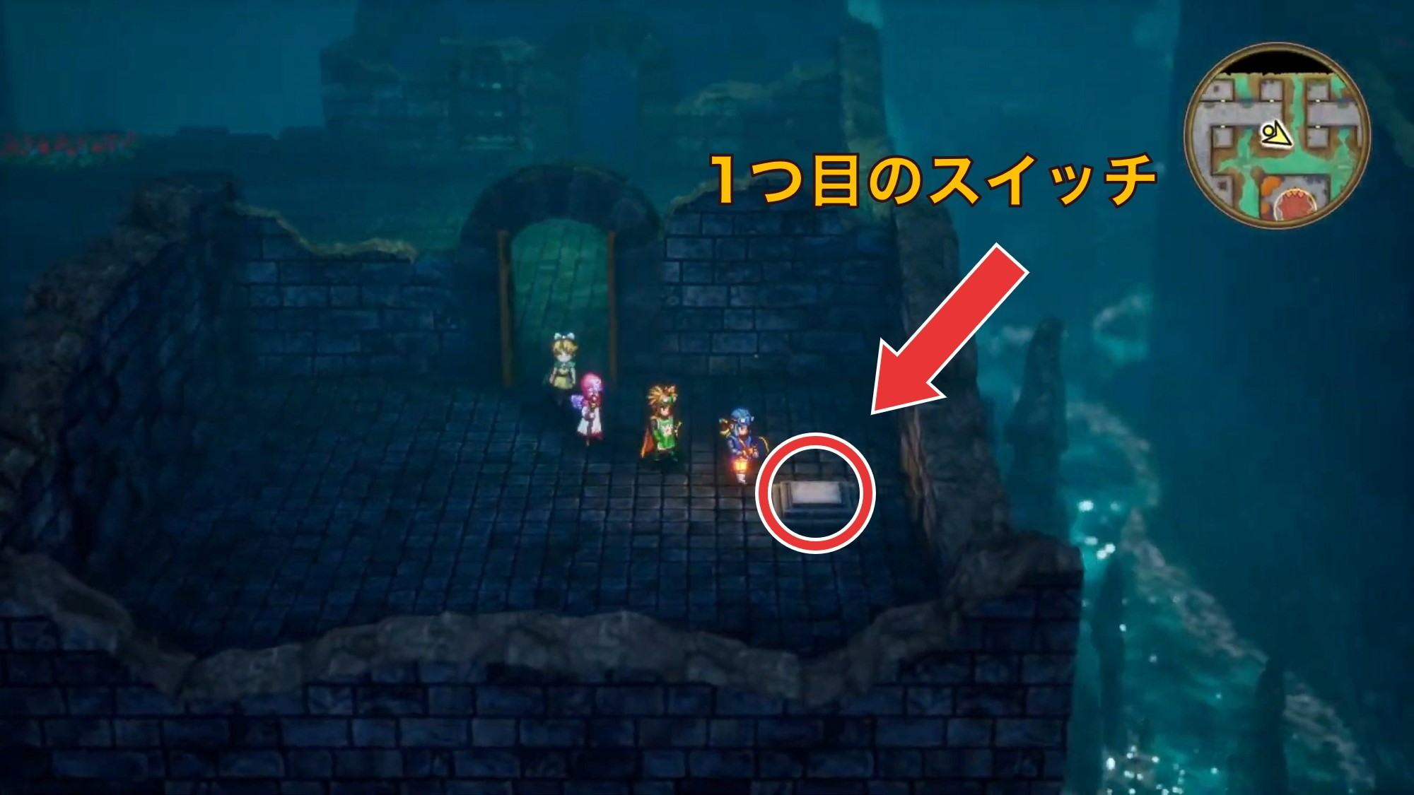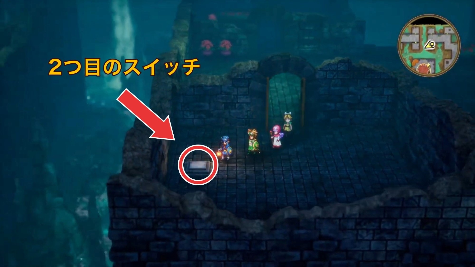 拡大する階段を下りたら北に進み、2つ目のスイッチを押しましょう。