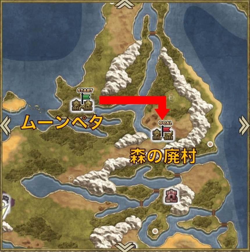 | 2 | ムーンペタ南東にある森の廃村に向かう | ||||||||