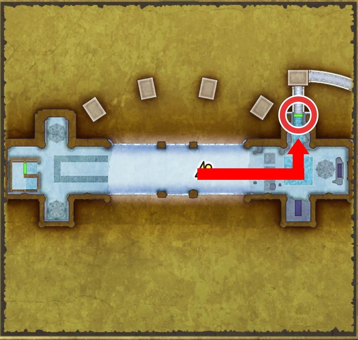 ベリアル撃破後に階段を登上ったら、道なりに進んだ先にある転移床に乗ります。転移床までは一本道なので迷いません。
