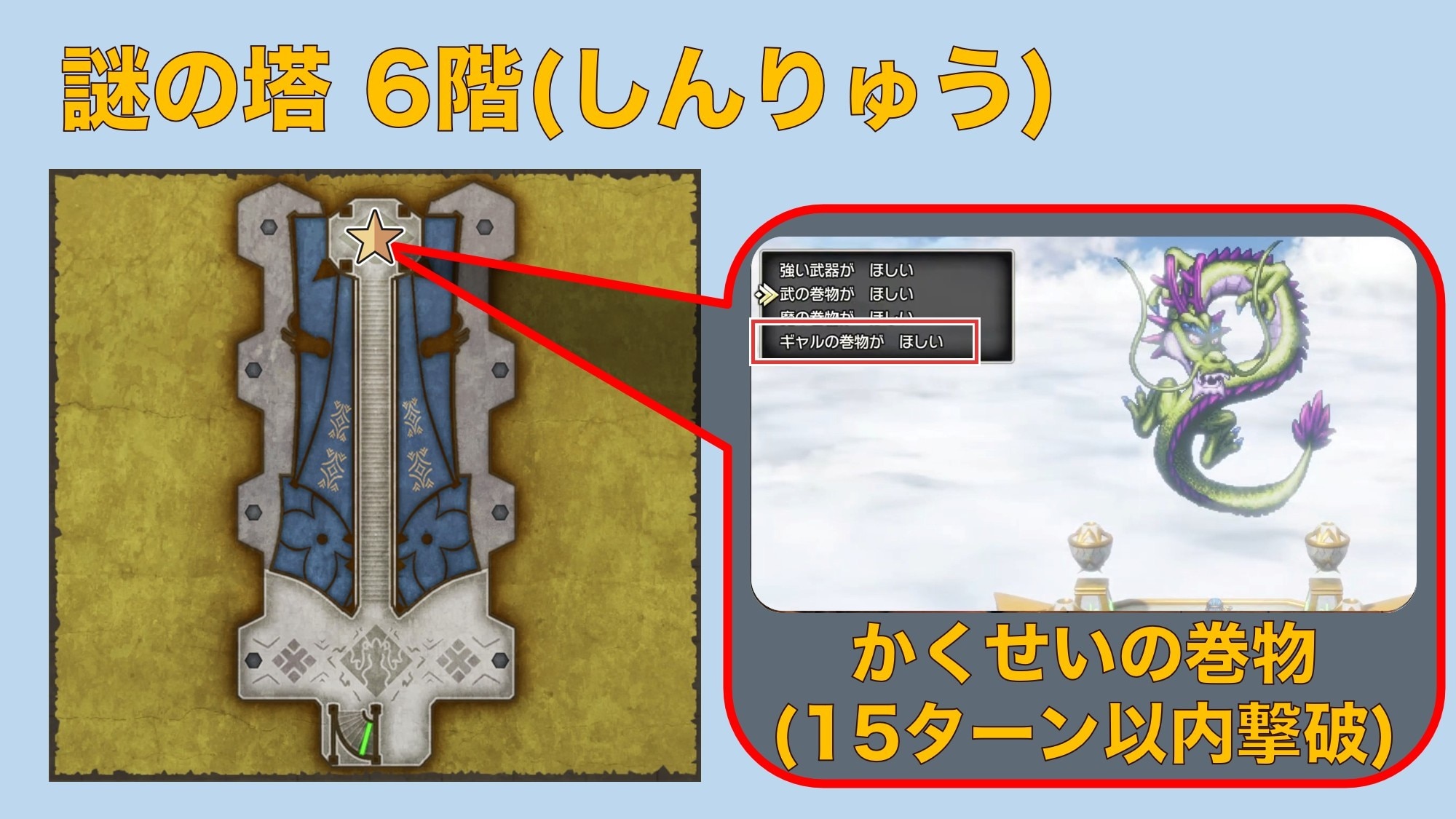 拡大する謎の塔6Fでしんりゅう討伐後「ギャルの巻物が欲しい」を選択することで入手 |