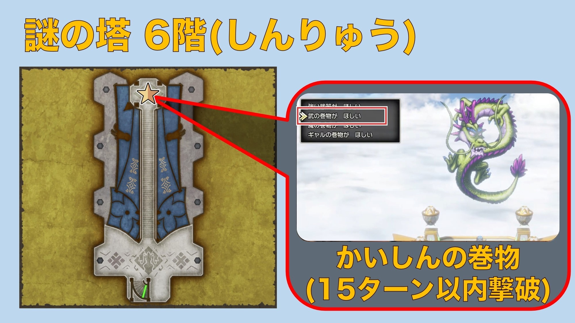 拡大する謎の塔6Fでしんりゅう討伐後「魔の巻物が欲しい」を選択 |
