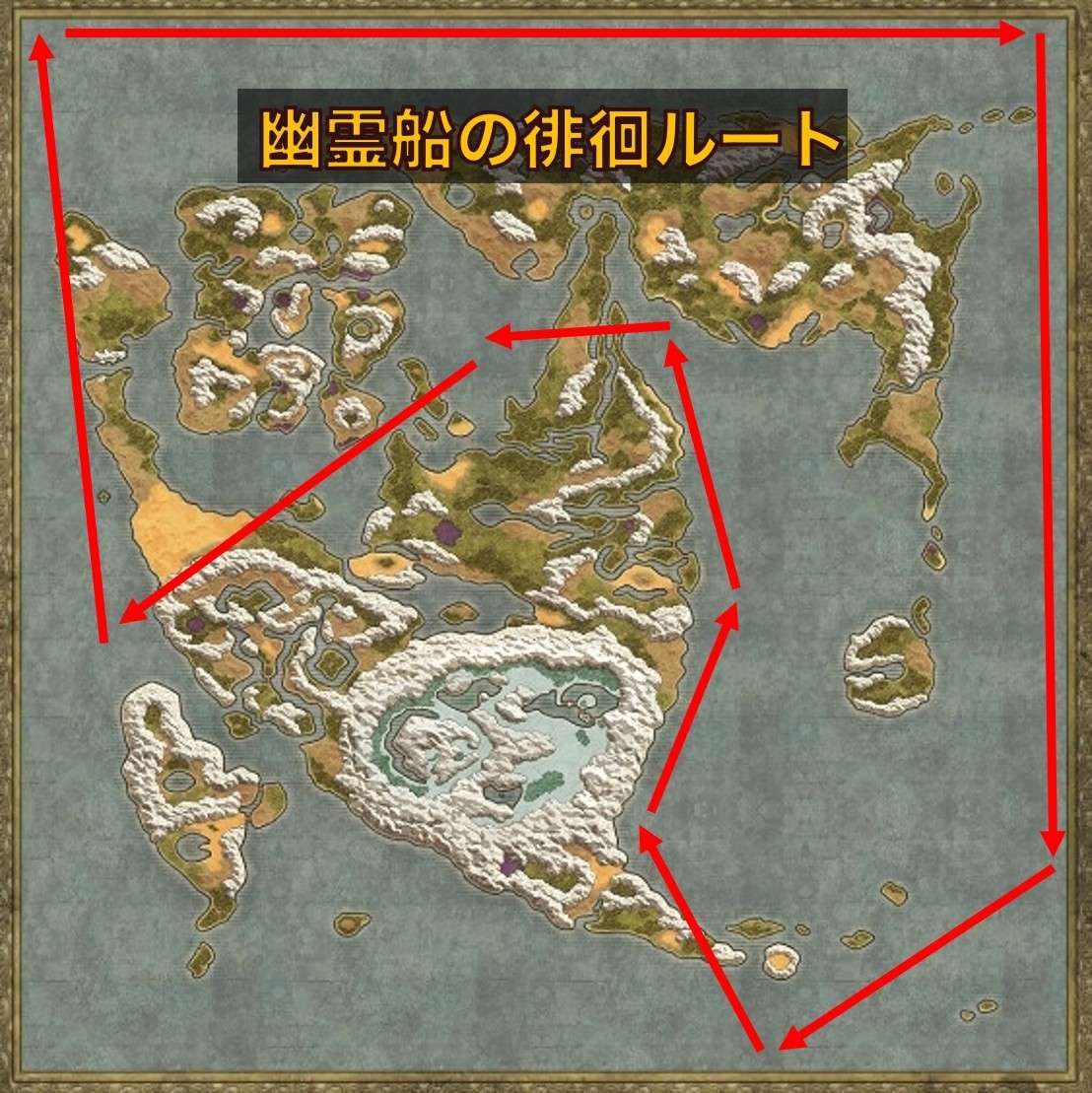 幽霊船は、海底や深海を徘徊しているダンジョンです。出現場所はランダムですが、同じ位置を周回しているため、幽霊船の周回場所を反時計周りに進むといつかすれ違えます。